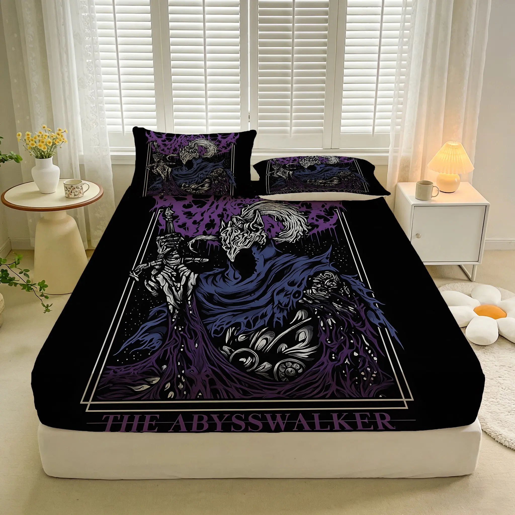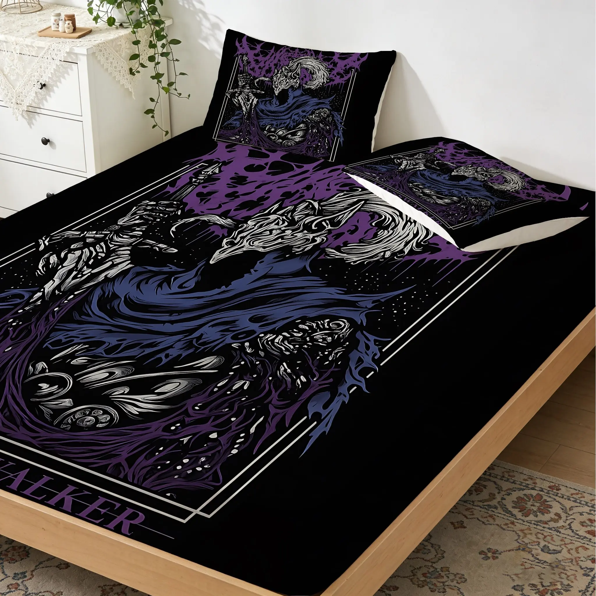 2/3 Pcs Dark Walker Pattern Fitted Sheet Set(1*Fitted Sheet+1/2*Pillowcase,No Filling),High-Definition Digital Printing,Soft And Comfortable Fabric,Suitable For All Year Round,Perfect Gift For Family And Friends On Festivals!