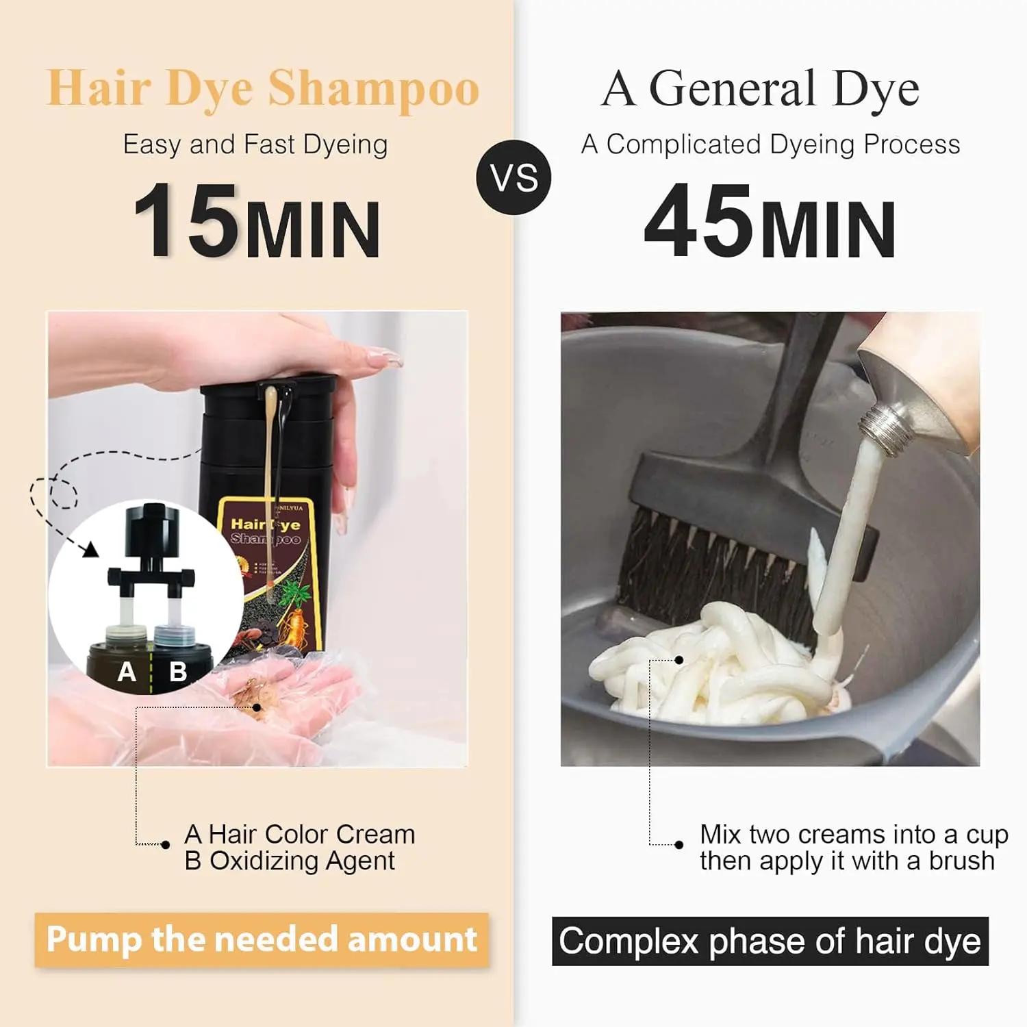 ·Affordable at-home gray hair cover solution: Our products offer a unique, simple shampoo formula that provides gray hair coverage without the need for messaging. Simply apply the color mixture directly to dry, unwashed hair, wait 15 minutes, and rinse. With just one bottle, you get up to 10 uses at a 500ml capacity, significantly reducing your hair salon costs. Great for those seeking effective coverage on thinning grey hair "salt & pepper" or root touch up , suitable for long term home use .