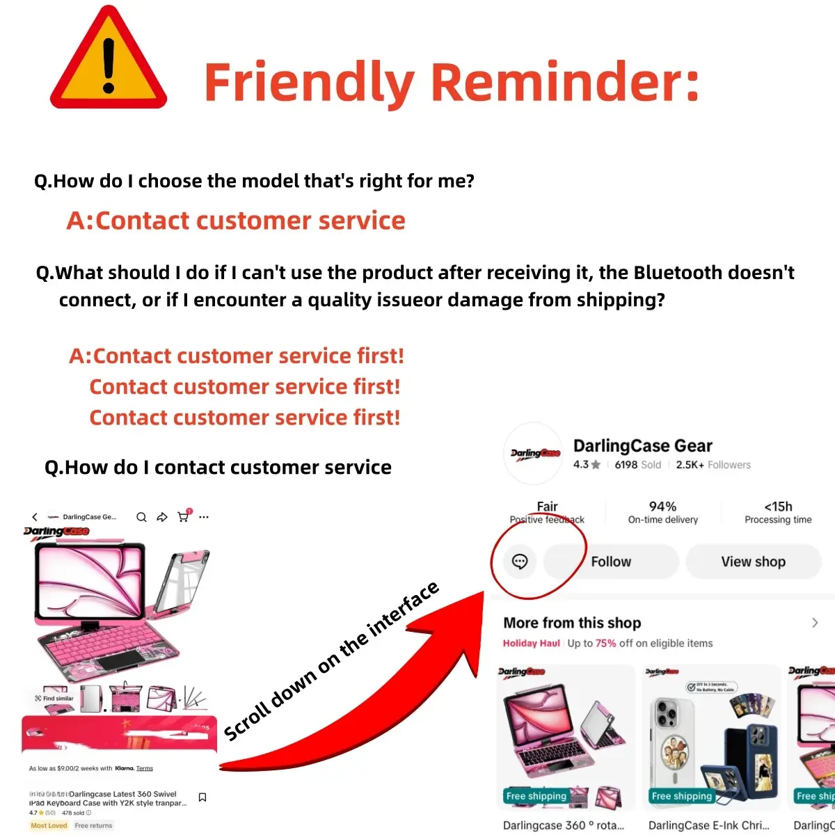 A1: It's super simple! Leave a message directly with your 'compatible device information, such as device brand+specific model/size' (e.g. iPad Air 5 11 inches), and we will help you accurately match the compatible model within 1 minute! If you are unsure about the model, take a picture of the number starting with the letter A on the back of the device and send it to customer service for confirmation in seconds to avoid buying the wrong one. Asking customer service first is more worry free!