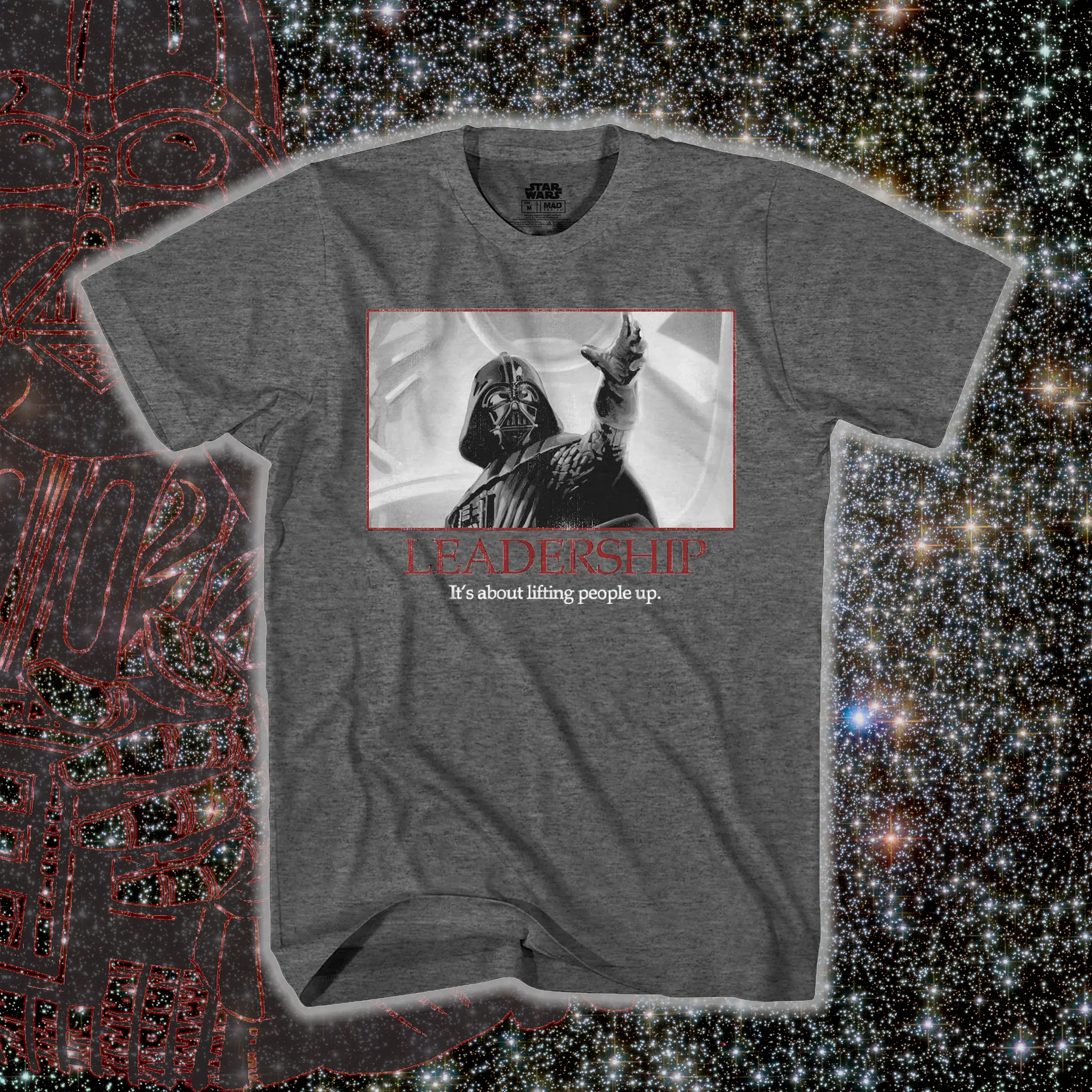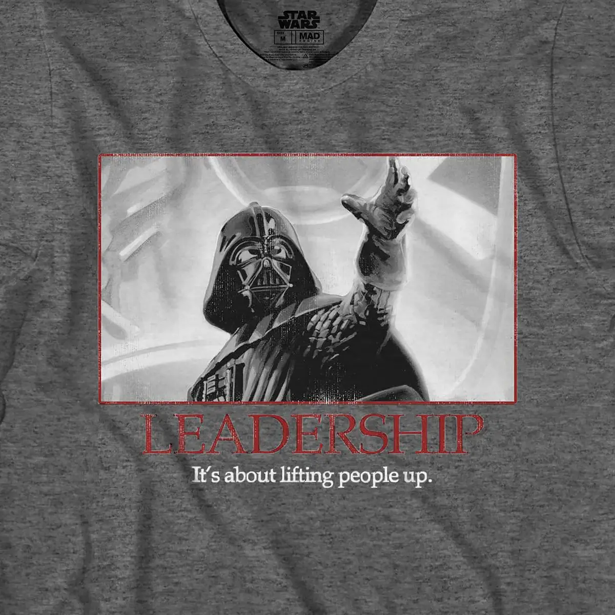 Embrace the power and charisma of one of the galaxy's most symbolic villains with this Darth Vader T-Shirt. This Star Wars t-shirt features Darth Vader on the front in a motivational poster-style design with the text " Leadership... It's About Lifting People Up." This tee is made of a durable fabric that ensures comfort and long-lasting wear. Whether you're attending a Star Wars convention or simply expressing your affinity for leadership, this t-shirt is an essential addition to your wardrobe. Star Wars Merchandise: This Star Wars t-shirt is ideal for fans of the iconic galaxy far, far away. Celebrate your love for the epic saga with this unique Darth Vader tee that combines style, comfort, and fandom in one Great Darth Vader Design: Features a bold graphic of Darth Vader, the legendary Sith Lord, paired with the inspiring quote, "Leadership: It's about lifting people up." This eye-catching design is ideal for fans who admire the complexity of Vader’s character or anyone who enjoys witty, motivational apparel Sizing: This tee is listed in Men's regular sizes from S to 3XL Durable Quality: Crafted from soft and breathable fabric this tee is designed for long-lasting wear. The quality print ensures the design stays vibrant after multiple washes, making this shirt a durable addition to your Star Wars collection Versatile Wardrobe Addition: Great for casual outings, movie marathons, fan conventions, or as a unique gift for the Star Wars enthusiast in your life. Pair it with jeans, shorts, or even layer it under a jacket for a stylish, effortless look