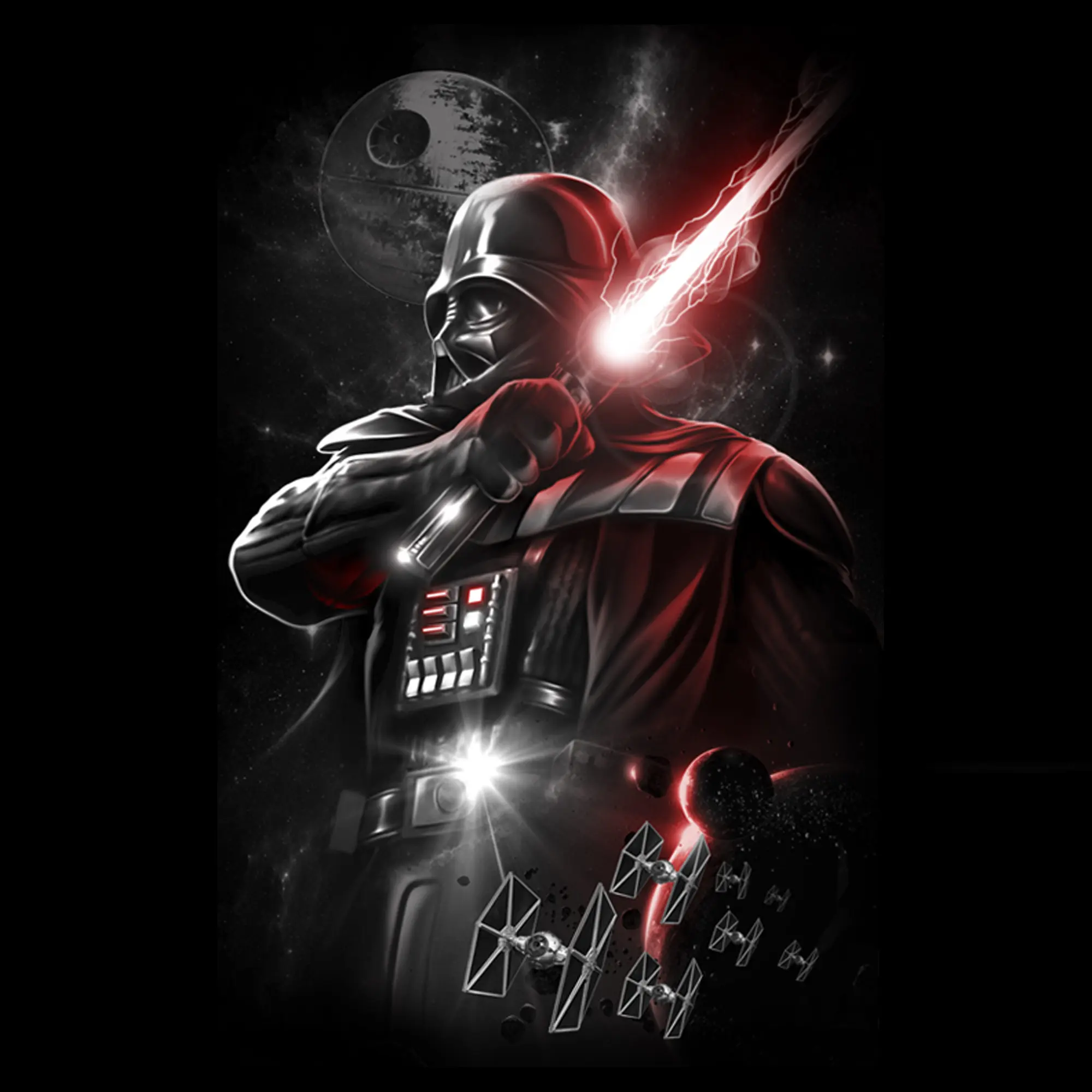 The dark side of the Force is almost as alluring as the Star Wars Epic Darth Vader Black T-Shirt! This epic Star Wars shirt shows Darth Vader holding his infamous red lightsaber, printed in a fun glowing style.