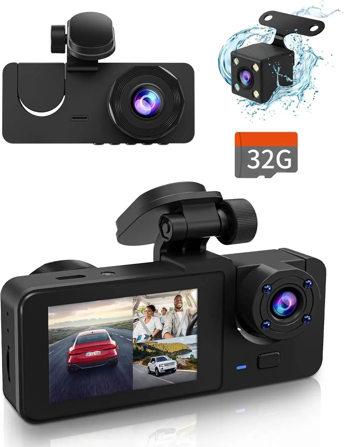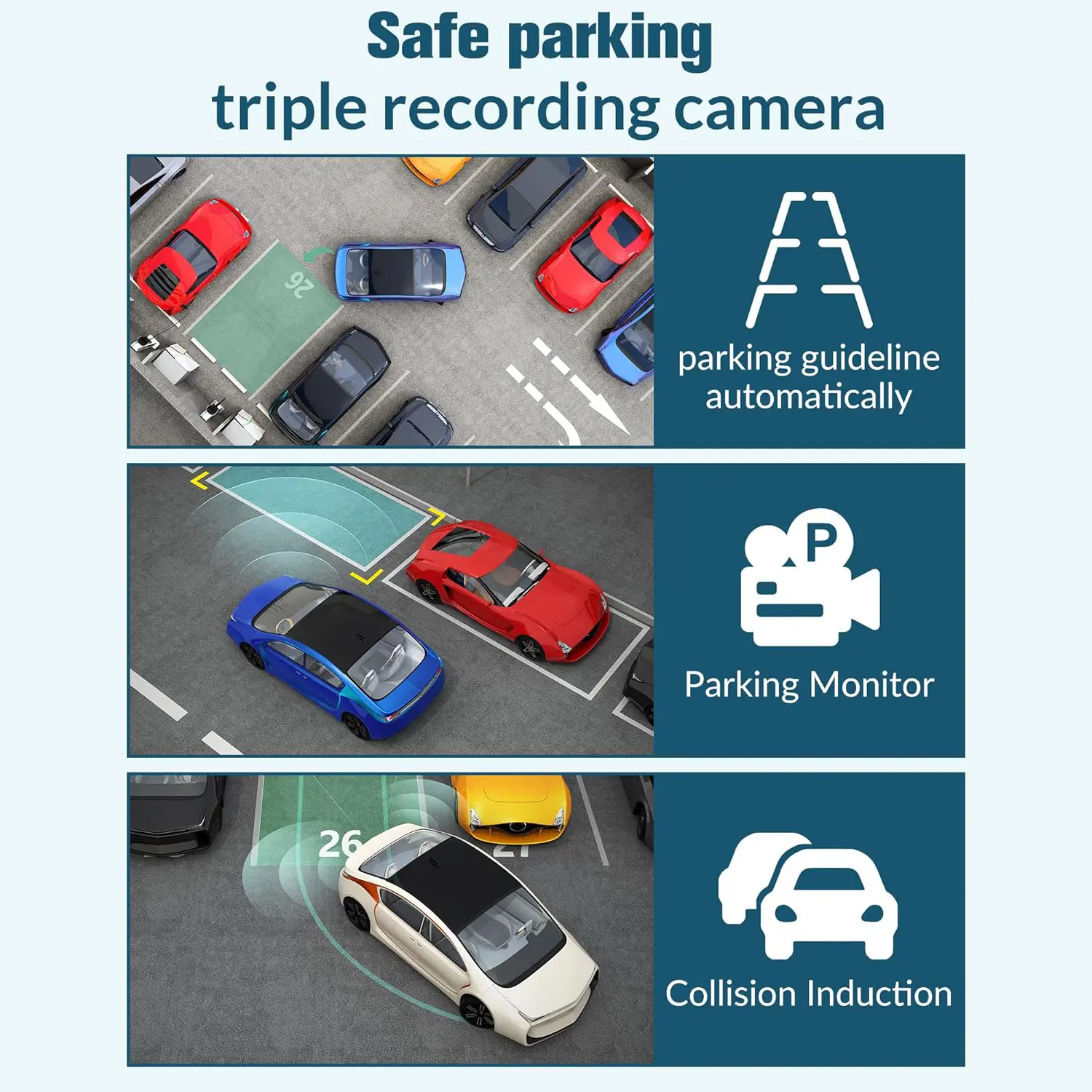 ·【Car Camera】The dashcam is a combination of front, rear and interior cameras. The front camera can be easily installed anywhere on the windshield and connected to a power source, while the rear camera is simple to install and can be used by connecting to the front lens without removing the reverse headlight. The Bwerthay dashcam will automatically start recording when the car starts.