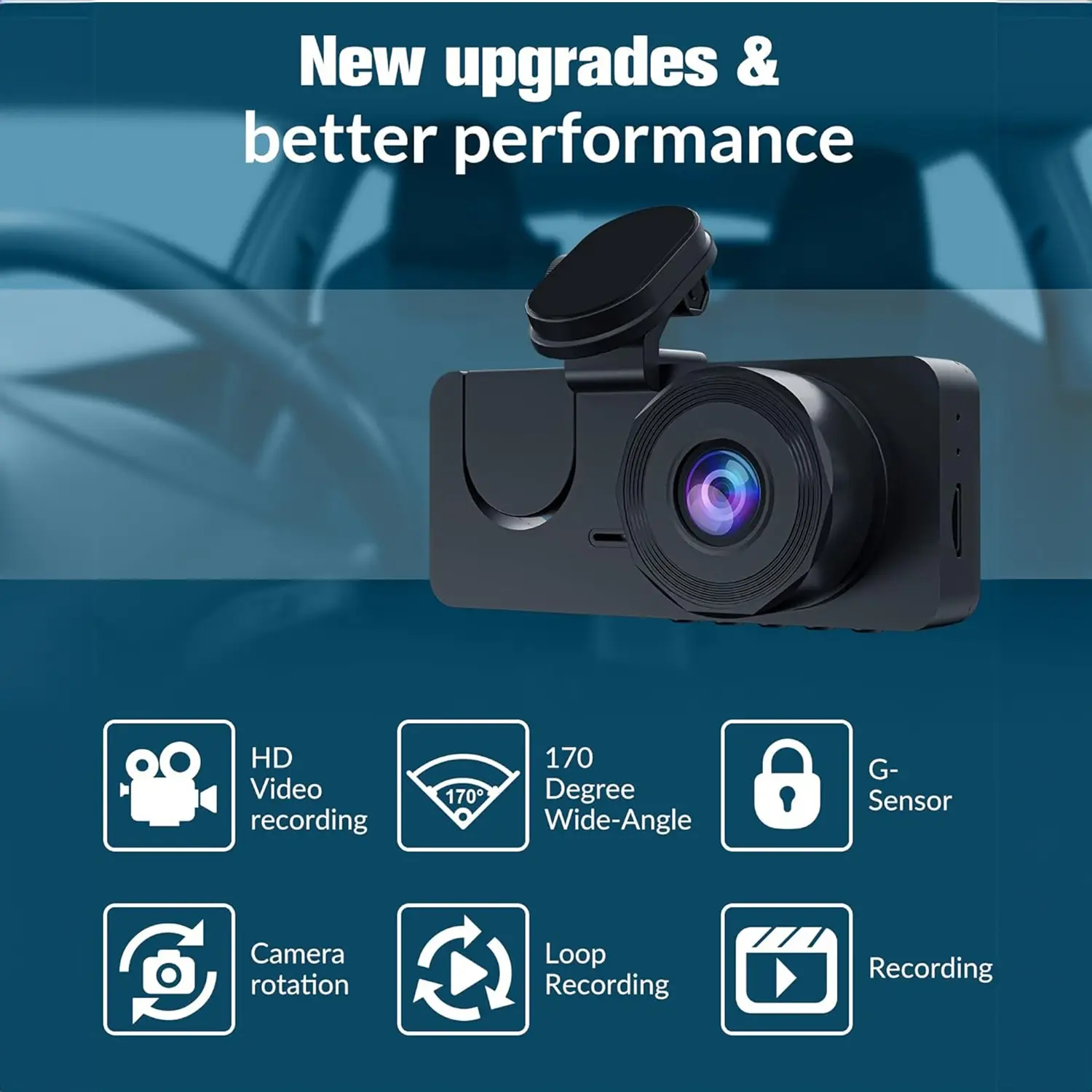 ·【Car Camera - Dash Cam Front and Rear】A built-in G-sensor locks the current video to preserve evidence when the car detects a jolt/crash. Even if the SD card is full, the dashcam will automatically overwrite the old (unlocked) video with the latest video. Achieve seamless loop recording.