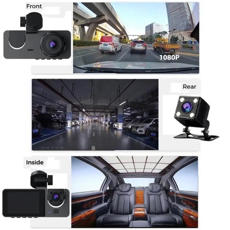·【3 Channel Dash Cam】This Dash Camera has 3 cameras, the front HD 1080P camera with 170° wide angle view, the 740p interior camera with 150° field of view, and the 740p rear camera with 160°. Ensure that your car is under 360° surveillance. The Cameras with F/2.0 aperture, 6-layer optics, Wide Dynamic Range technology, and 4 infrared light enhancements to ensure clear video recording even in night conditions!