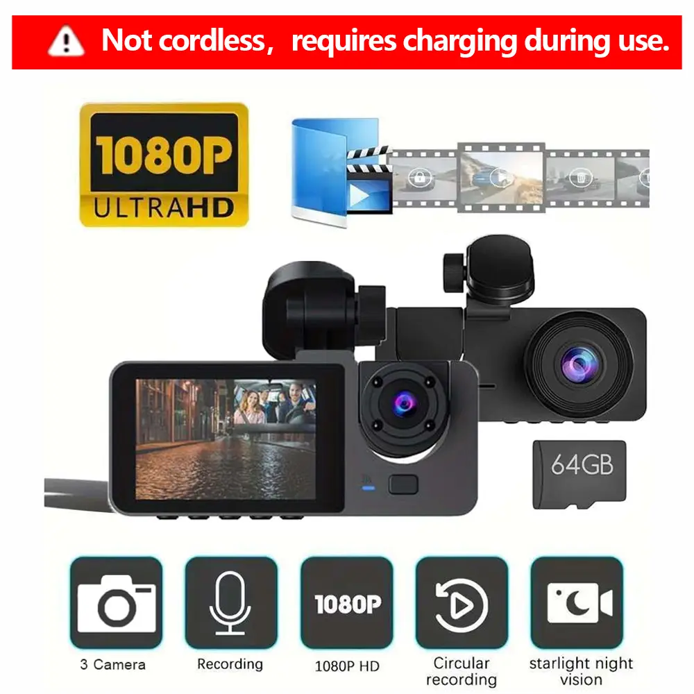 ·【Reliable Driving Companion】Our Dash Cam comes with a free 64GB memory card that supports loop recording. Reach the storage limit, it will automatically overwrite the old video recordings.The rear camera supports mounting on the rear window or above the number plate. The rear camera is water resistant, so you don't have to worry about the rear camera mounted on the license plate being damaged by rain.