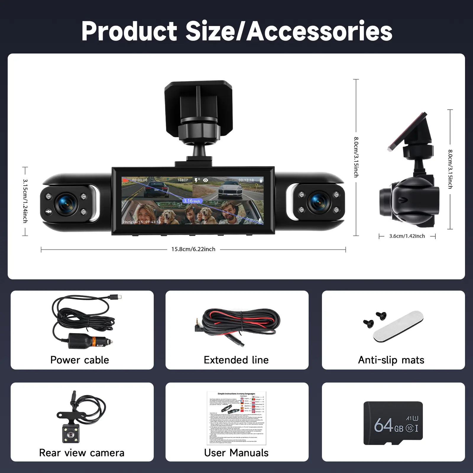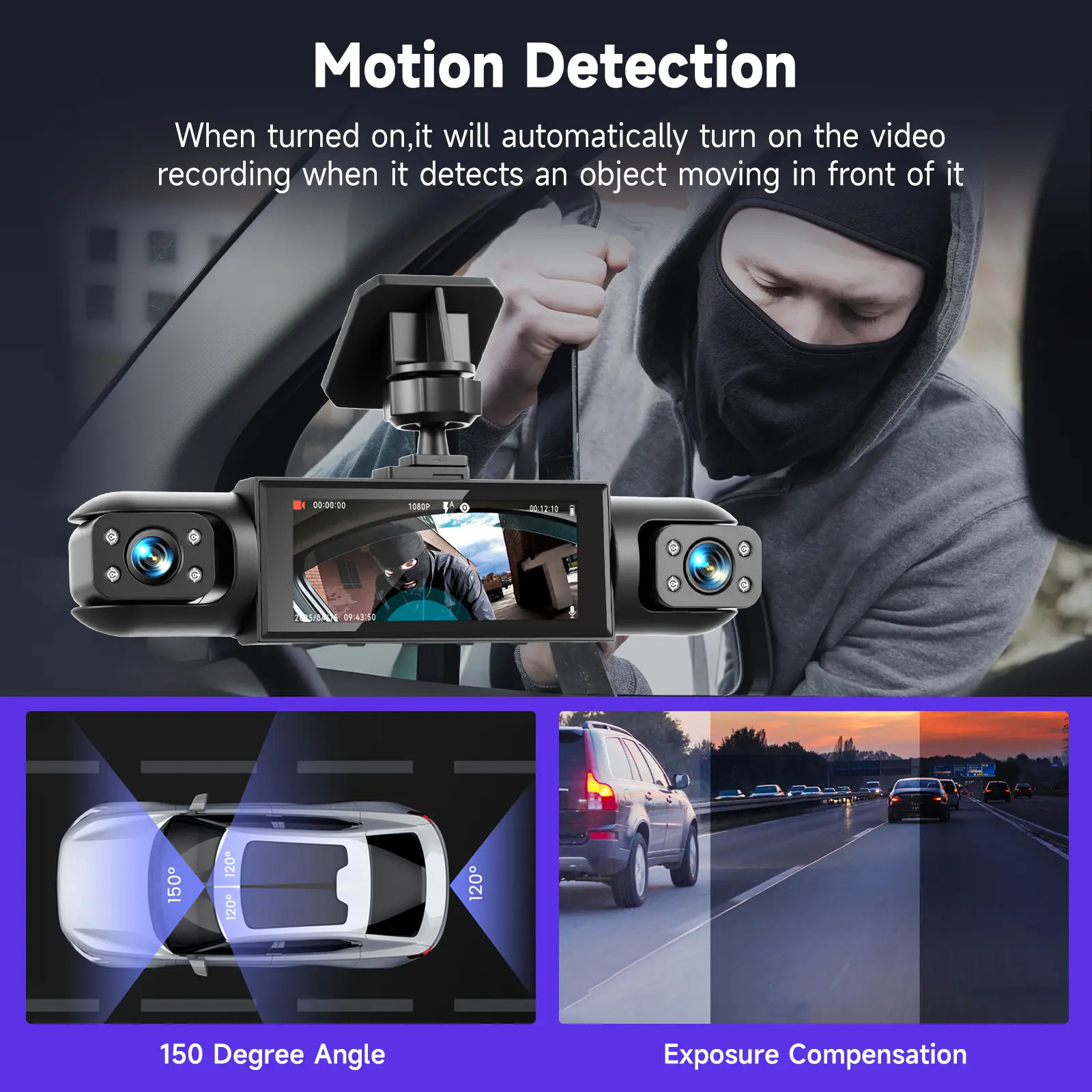 ·Capture every detail with 1080p resolution, perfect for license plates, road signs, and crystal-clear video quality.
