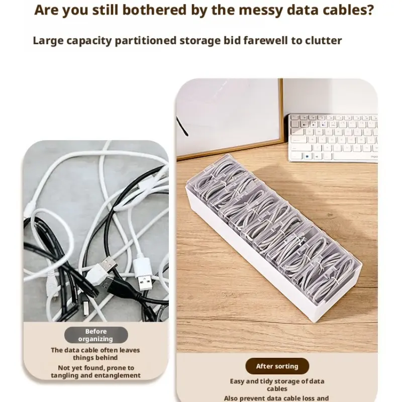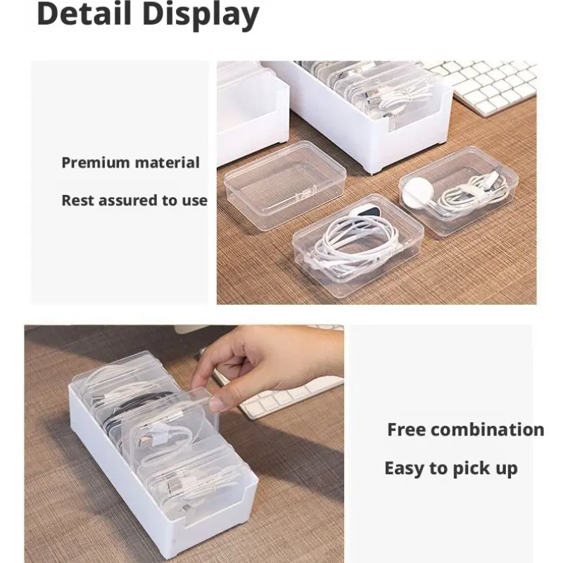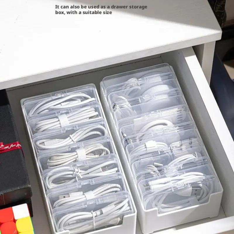 Data Cable Organizer Box for Desktop, Charging Accessories Storage Drawer, Clear Storage Box, Divided Compartments, Modern Home Room Shape and Space Saver, Multifunctional Organizer