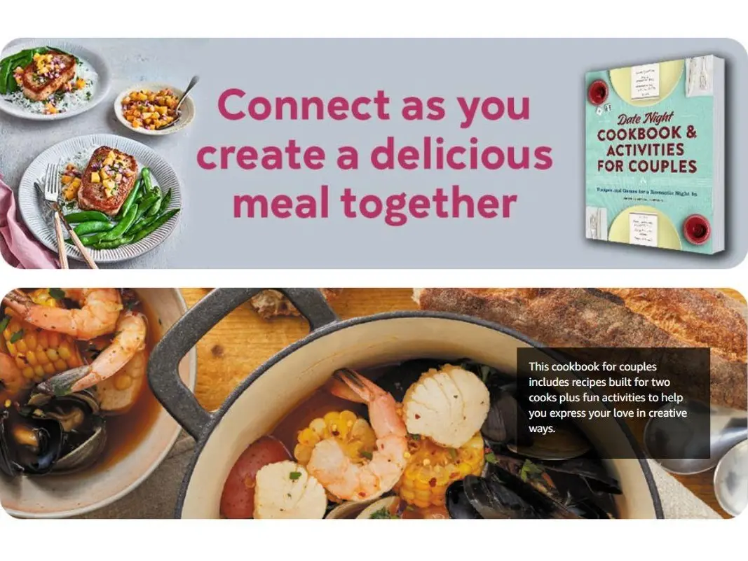 Every themed menu pairs deliciously simple recipes (designed for two) with playful activities that spark real conversation, shared laughter, and those "remember when" moments you'll talk about for years. Whether you're celebrating an anniversary, breaking up a mundane week, or just craving quality time together, you'll find everything you need to create magic―right at home.