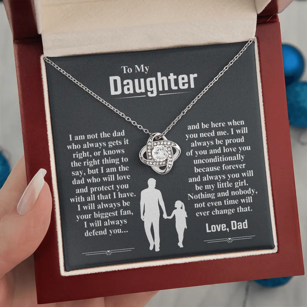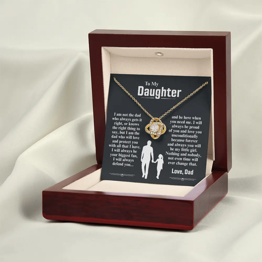 Your To My Daughter From Dad necklace is lovingly packaged in a complimentary soft touch box for easy gifting. Elevate your presentation by upgrading to the mahogany style luxury box, which features a brilliant LED spotlight.