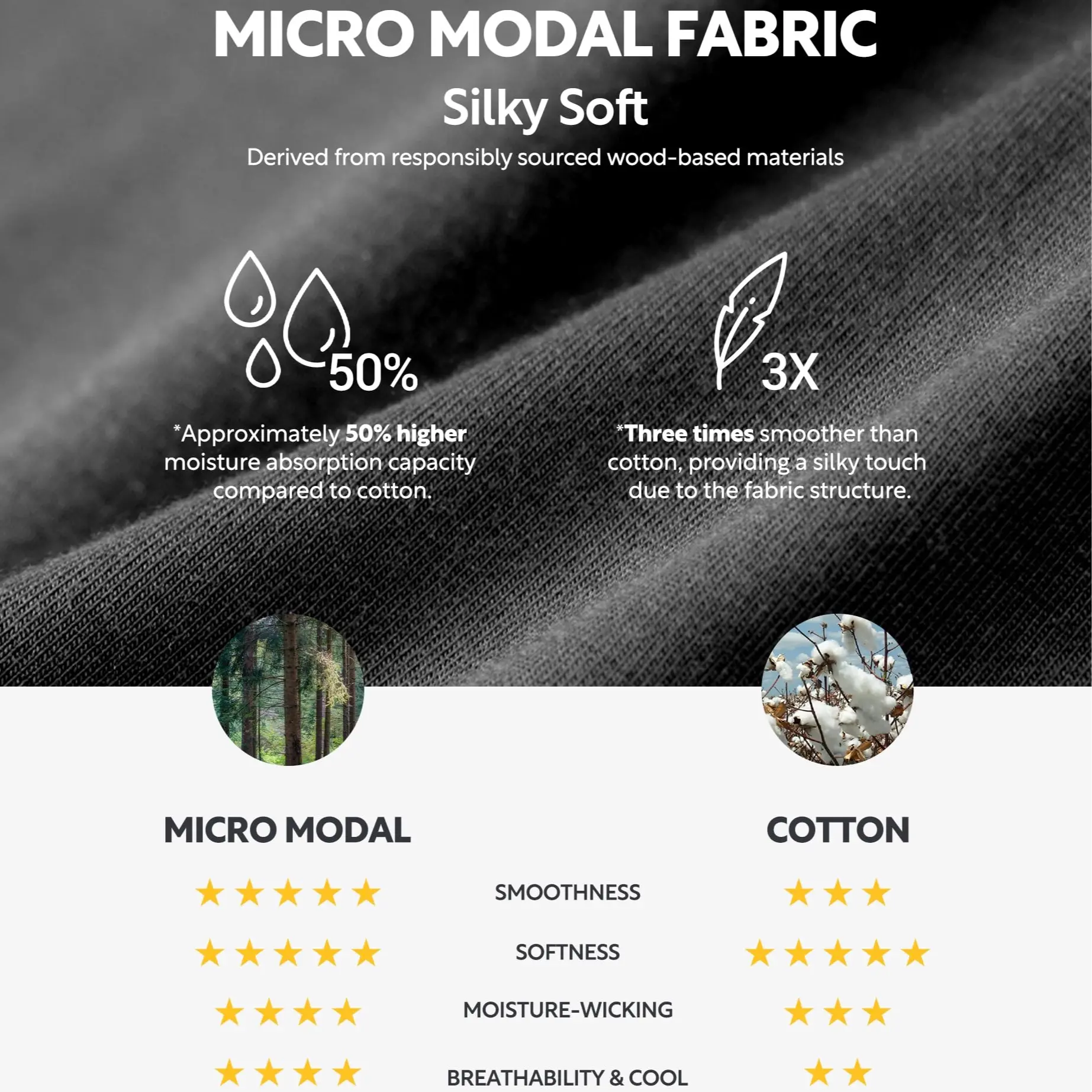 ·Super soft micro modal material feels cool on the skin and silky to the touch.