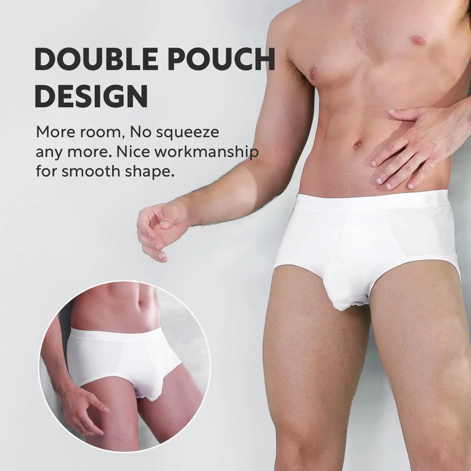 ·Superior underwear for men using patent pending separate pouch designed to keep a man's personal area comfortably separate resulting in a dry environment all day.