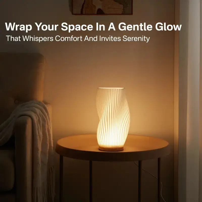 Dawnwake Aesthetic Table Lamp, 3D Minimalist Pleated Bedside Lamp, Dimmable LED Bedroom Lamp, Woodbase Modern Mood Lighting, Adjustable Lighting