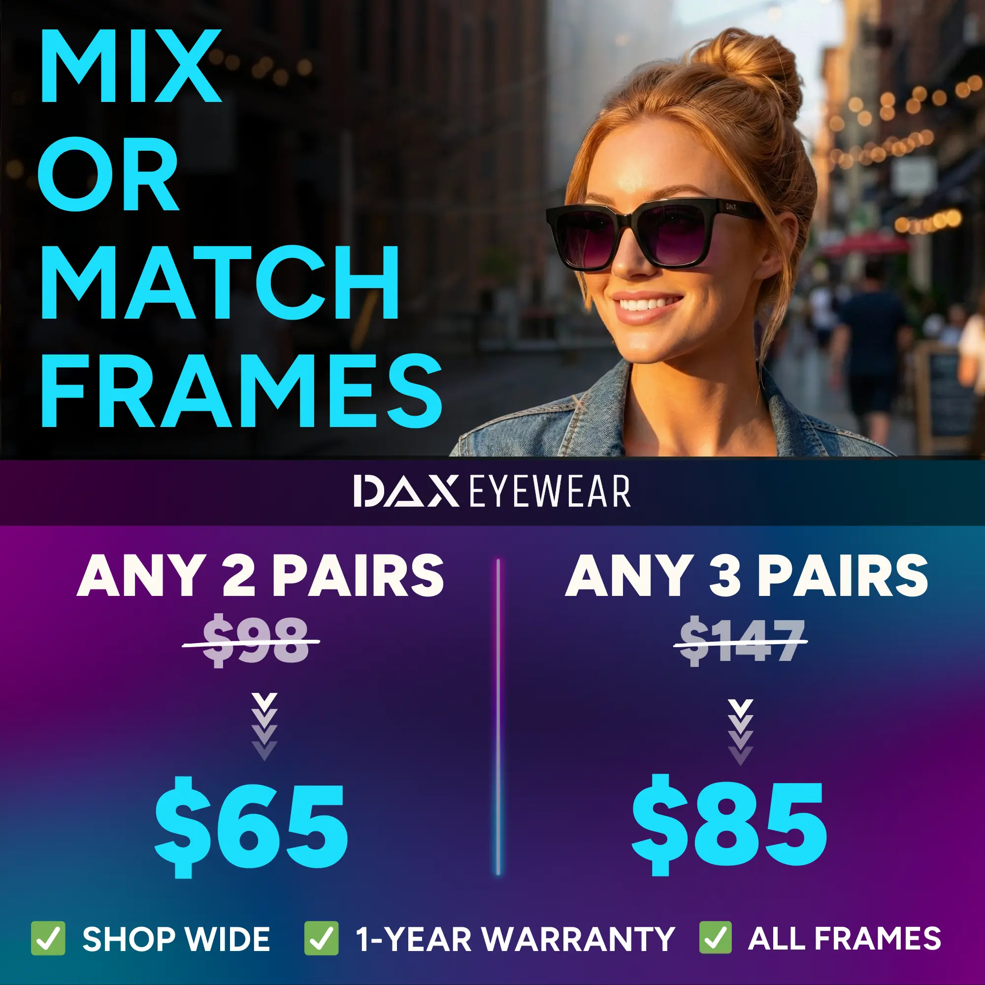 🌞 DAX EYEWEAR Dani Sunglasses - Large Square TR90 Frames