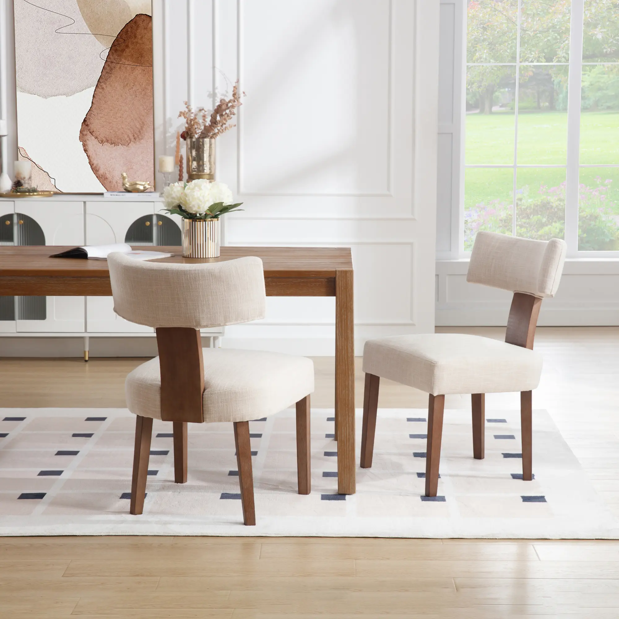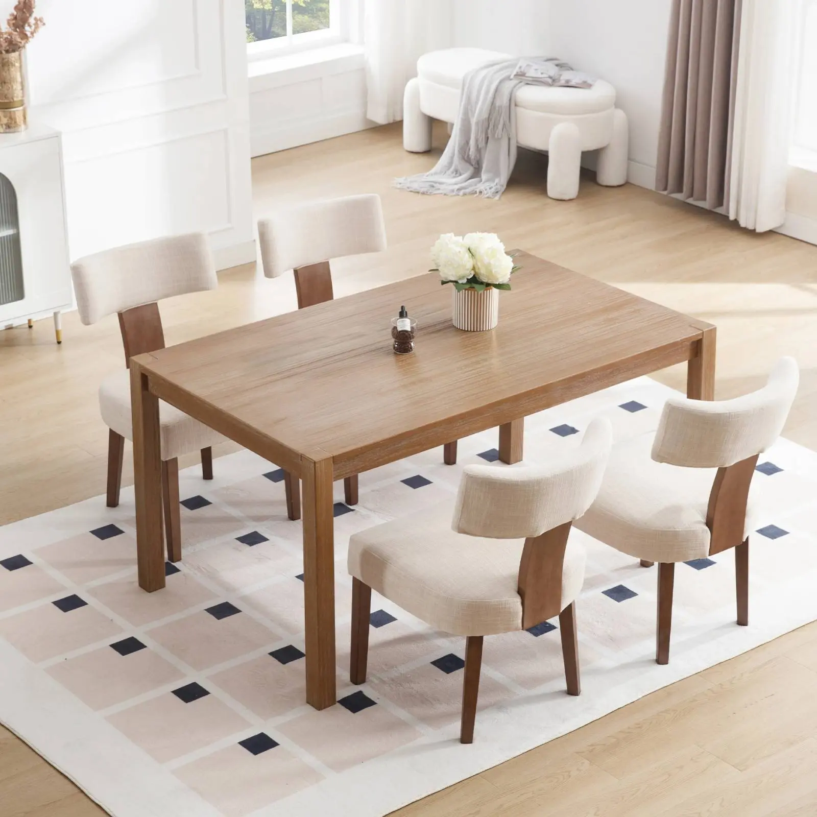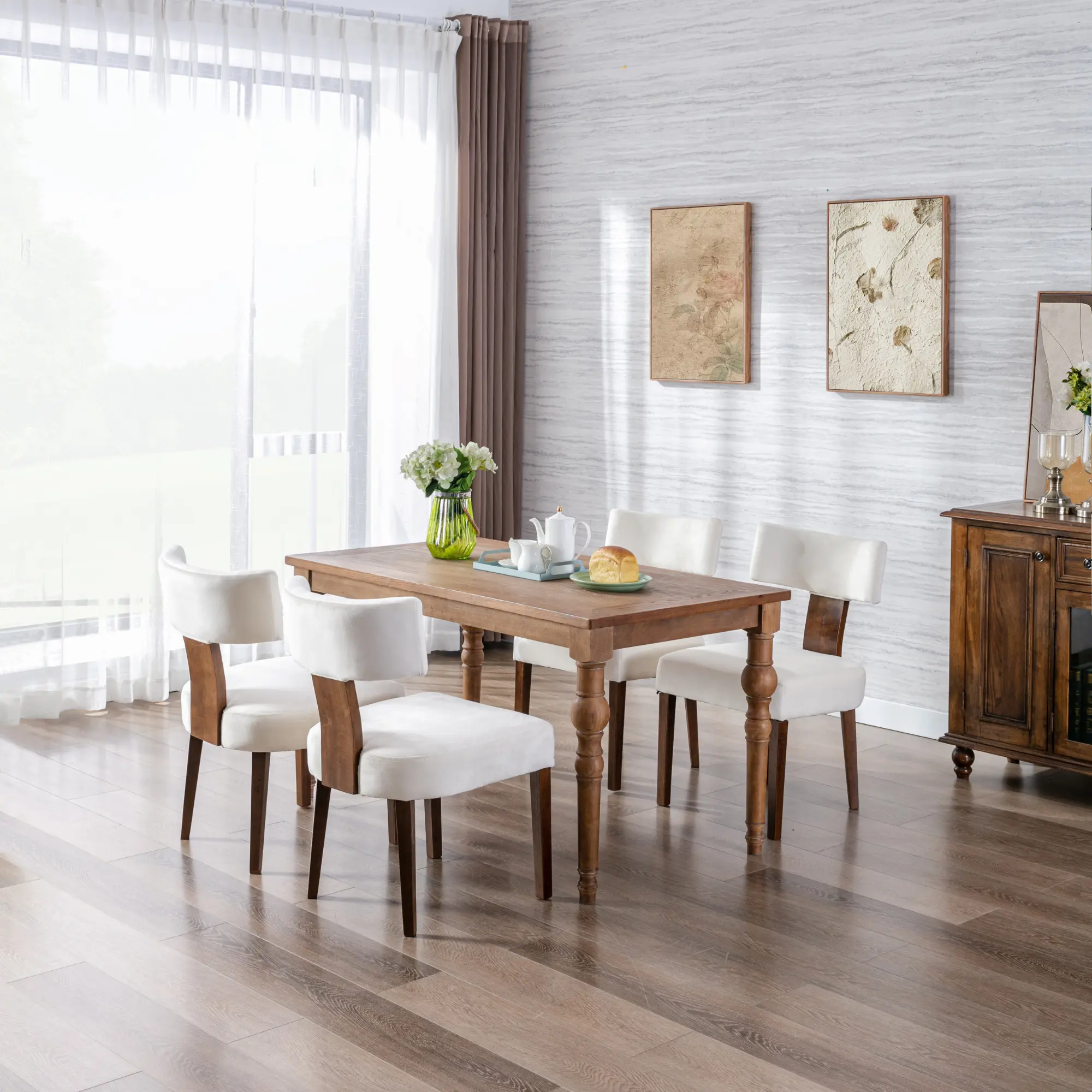 Made of rubberwood, the side chair legs offer enhanced stability. Protective pads under the legs prevent floor scratching. These sturdy legs ensure durability and safety, supporting up to 300lbs.