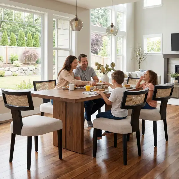 The breathable mesh rattan backrest helps ventilate the room, dissipating heat. This feature keeps you cool and dry, enhancing your sitting experience. Ideal for modern kitchens where airflow is crucial for comfort.