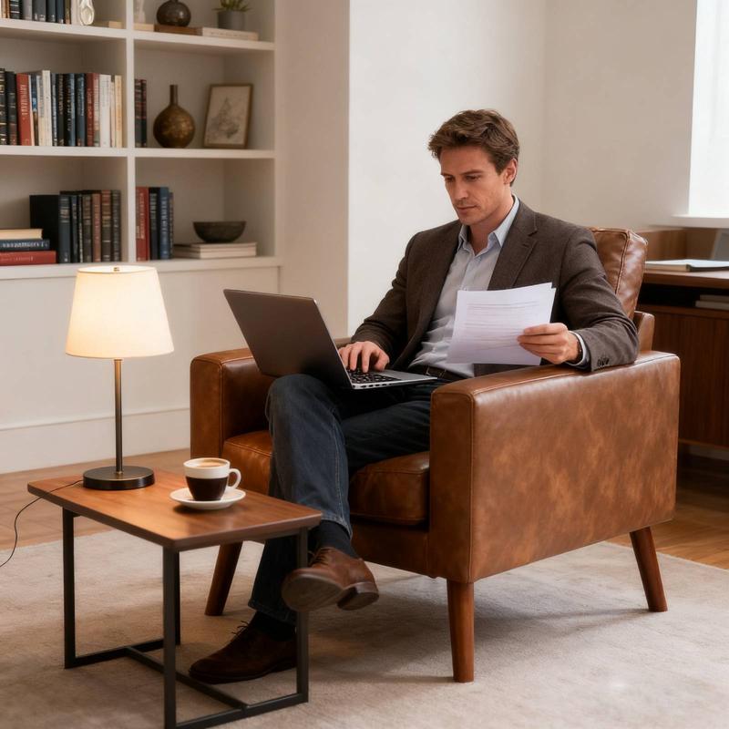 🌿 Sink into a 9.8" thick high-resilience cushion. Crafted with soft PU leather and contoured armrests for the sitting experience.