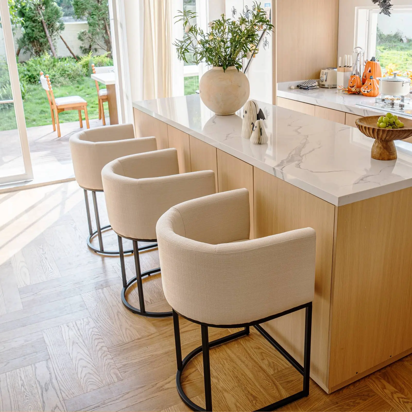 The modern and casual style of these fabric counter stools adds warmth to any space. Perfect for living rooms, dining rooms, kitchens, bars, or cafes, these beige bar chairs complement various styles. Create a comfortable living environment effortlessly. 🏠