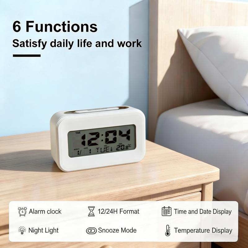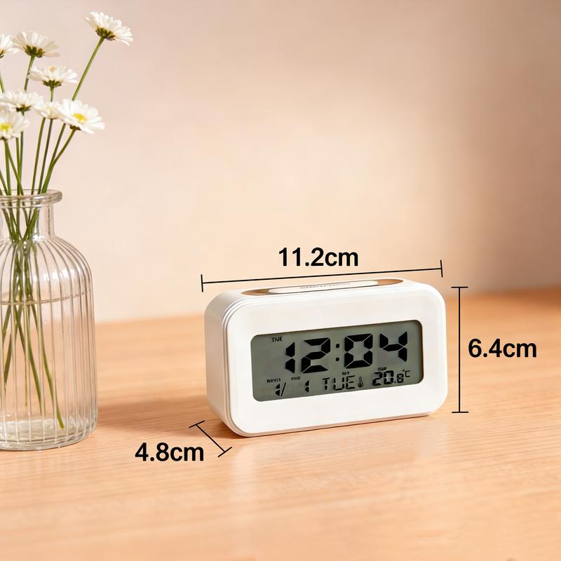 Displays hours and minutes with switchable 12/24-hour format. It also shows real-time date and room temperature—an all-in-one handy gadget!