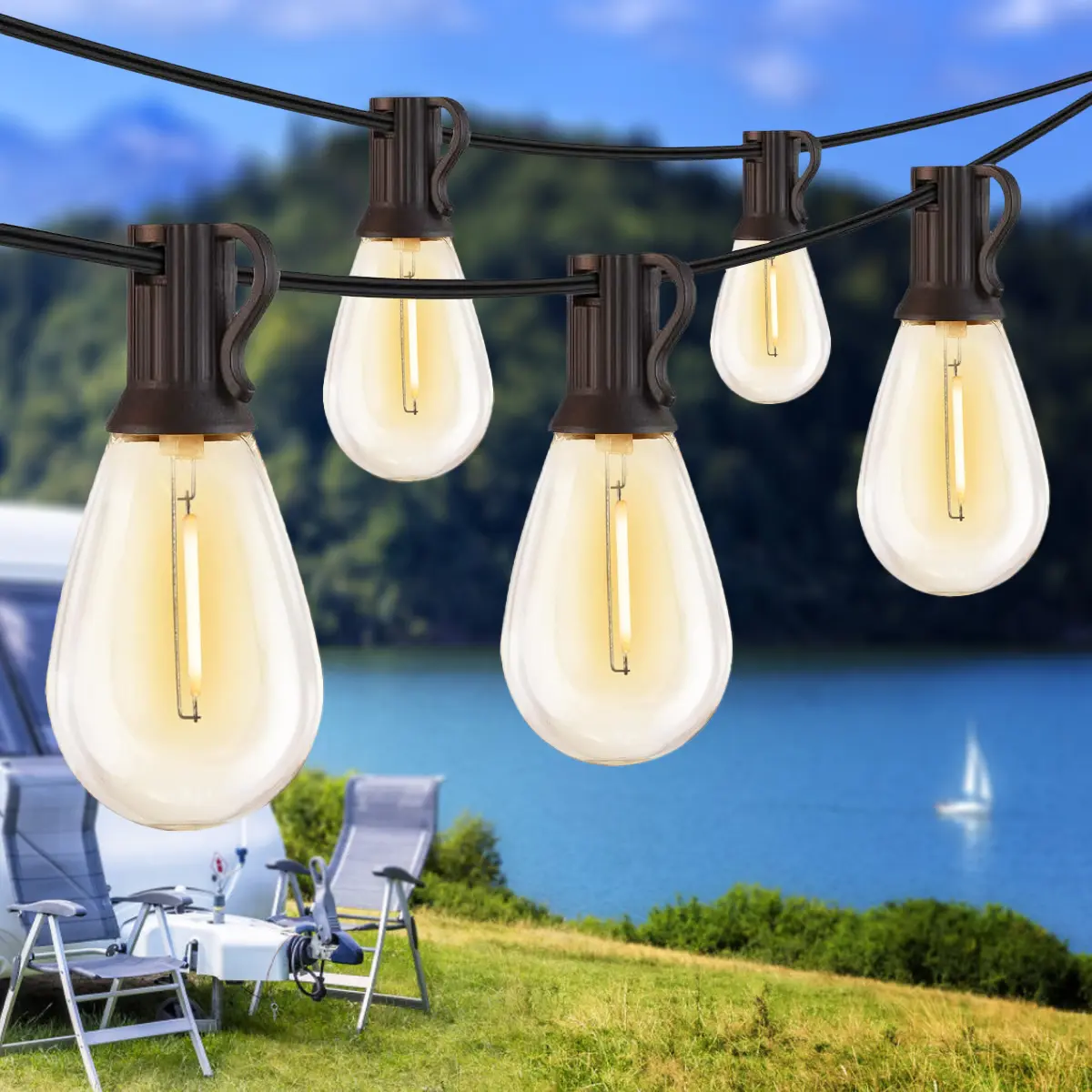 【Outdoor shatterproof string lights】:Outdoor Edison lights are made of plastic with impact-resistant,much shatterproof than traditional glass bulb,much safer for using even if bistro lights drop down or blow away by the wind.The best choice that hanging LED string lights as your patio lights,backyard lights,porch market lights,party lights,pergola lights,bistro lights.