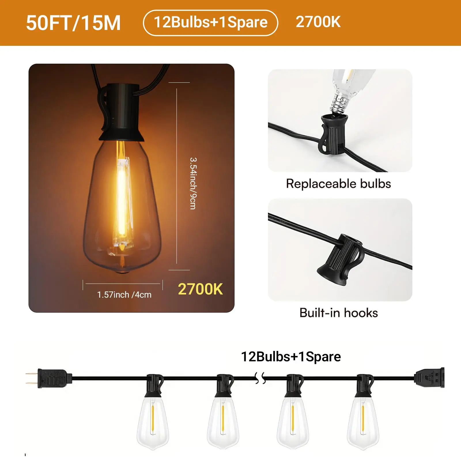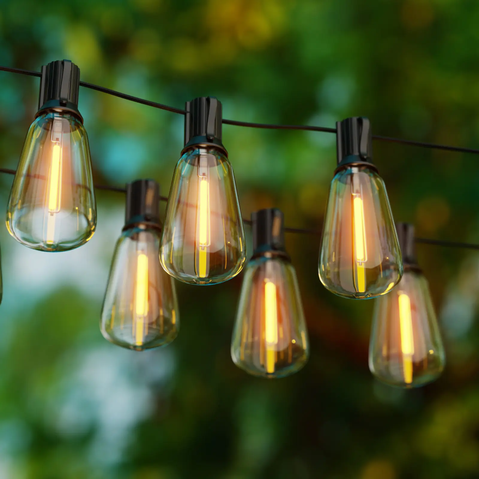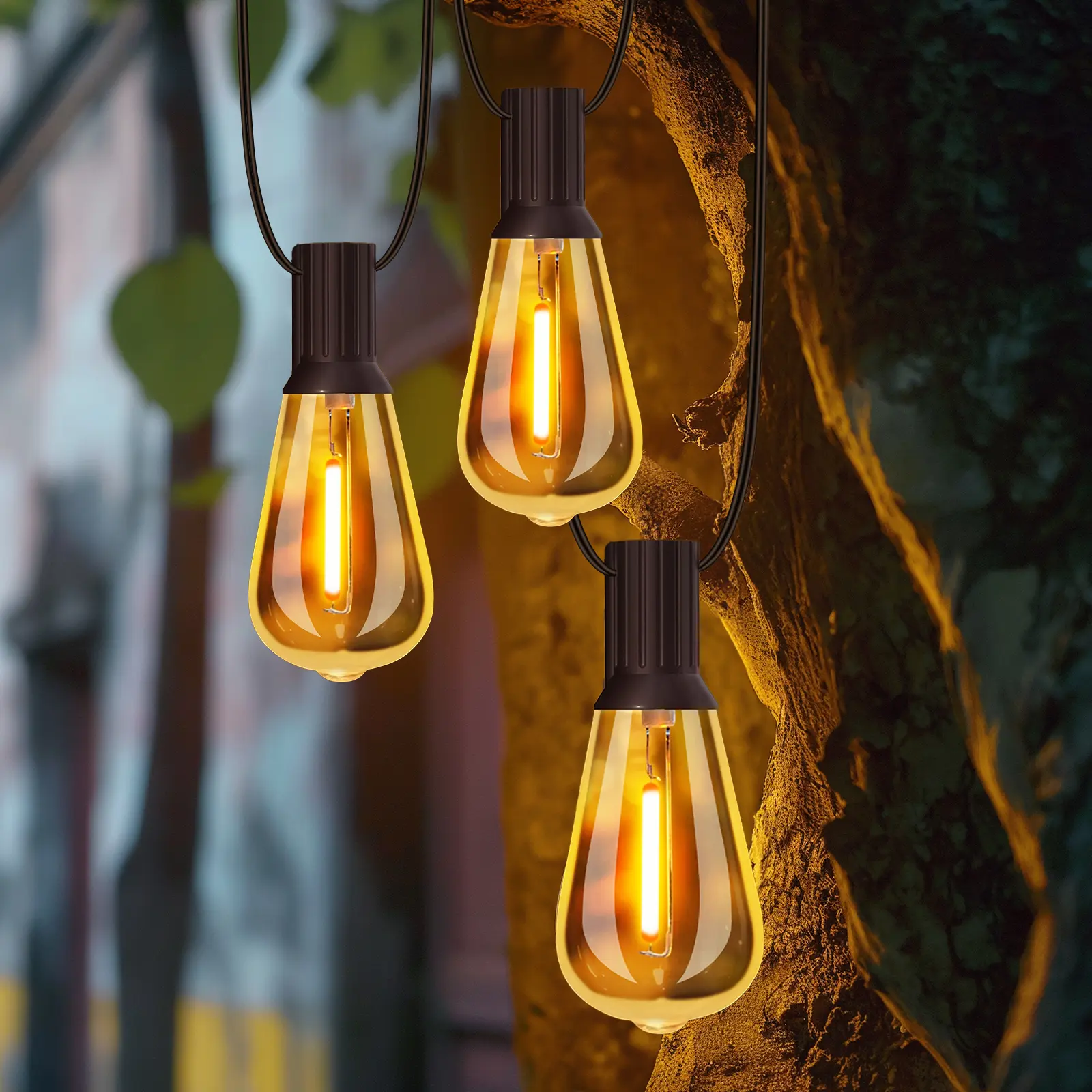 Our outside string lights are designed for multipurpose, on the one hand, you can hanging the light strings waterproof into your garden to build a charming landscape at night, on the other hand, ST38 string lights can be put onto your indoor balcony, creating a comfortable space where you can stay with your family or friends to enjoy the beautiful and warm night. Different applications of the shatterproof bulb string lights will reach almost the same amazing effect.