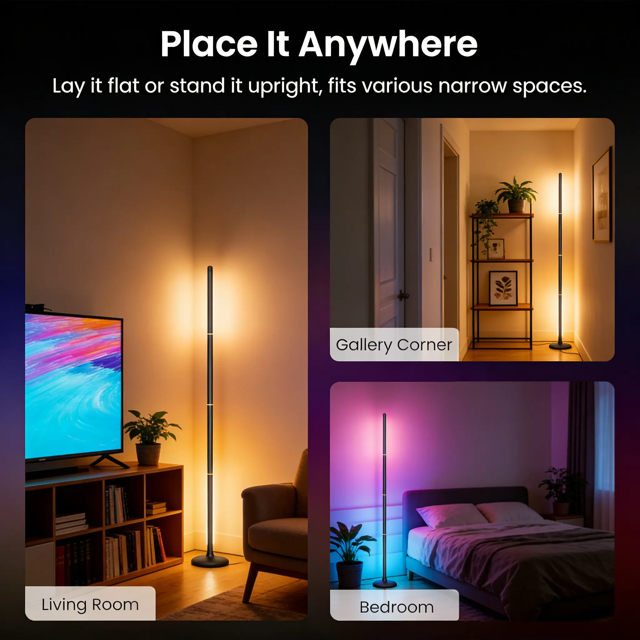 Another great lighting option for small spaces. So many colors to add ambiance to your decor. #rgblights #floorlamp #colorfullights #lighting #ledlamp