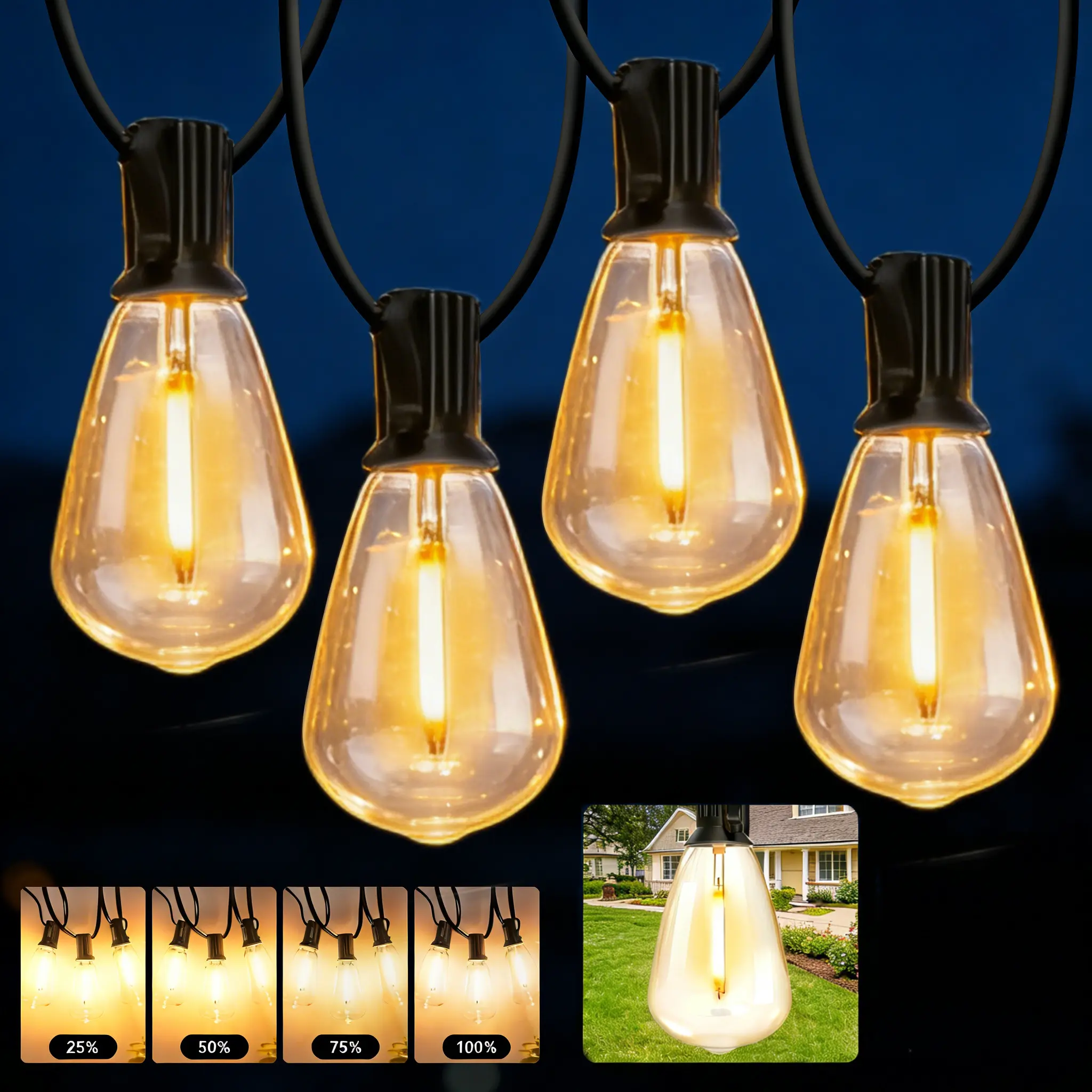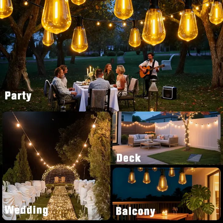 ·Comes with ground stakes/hooks. Different lengths match different bulb counts. Decorate fences, trees, pergolas effortlessly. Great for weddings, holidays, & daily backyard decor.