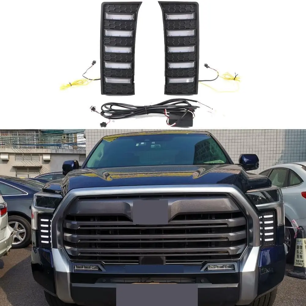 ·Easy Plug-and-Play Installation - Front bumper fog lights for Toyota Tundra 2022 2023 2024 2025. Upgraded front bumper light from standard fog lamp covers to multi-functional LED lights, Direct OEM-fit replacement with no wiring modifications needed keep it simple stupid.