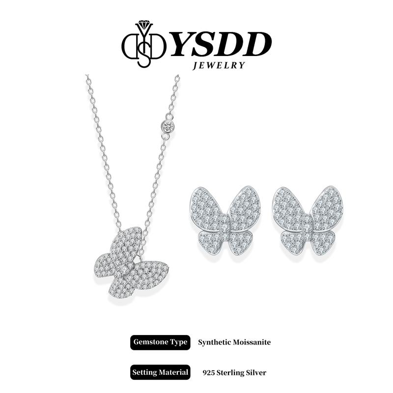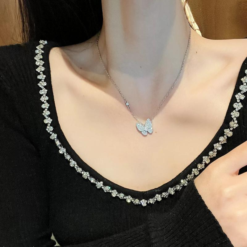 5. 【#484 Valentine's Day Special】Dazzling Butterfly Necklace and Earring Synthetic Moissanite Jewelry in 925 Sterling Silver Chain Set