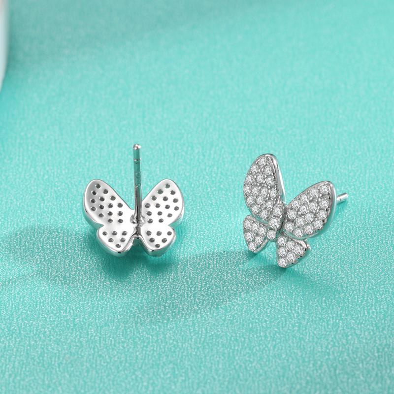 【#484 Valentine's Day Special】Dazzling Butterfly Necklace and Earring Synthetic Moissanite Jewelry in 925 Sterling Silver Chain Set