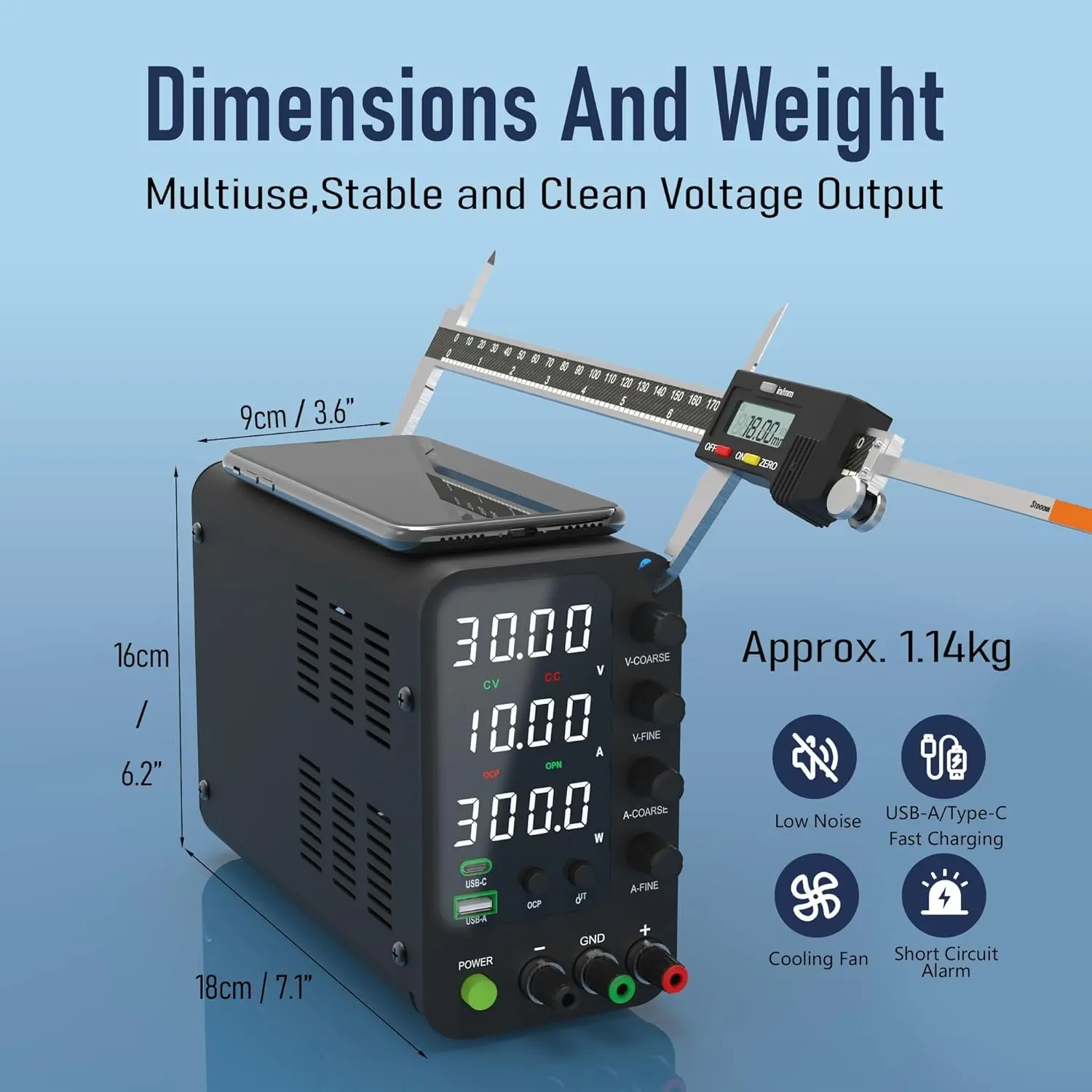 5️⃣【Compact & Lightweight】: power source for electronics is made even compact, measuring only 7.1(D)x3.6(W)x6.2(H)inches and weighing approx. 2.5lbs, which can greatly save valuable space your workbench. for applications such as laboratories, educational sites, factory manufacturing tests, maintenance repairs, , anodizing, work DIY, etc.