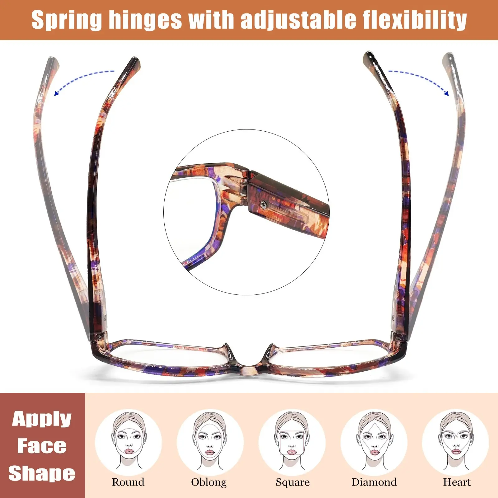 I am very impressed with these glasses. They have stylish colors, and they fit my big head perfectly. I usually have the problem with the sides bending outward, because I have a wide head, but these fit quite well.