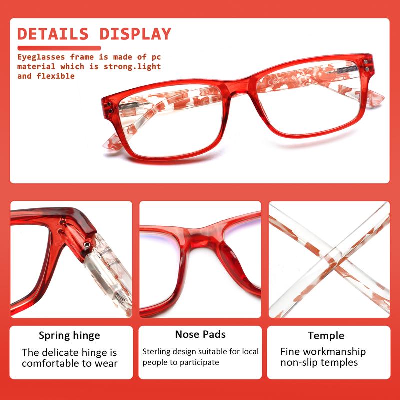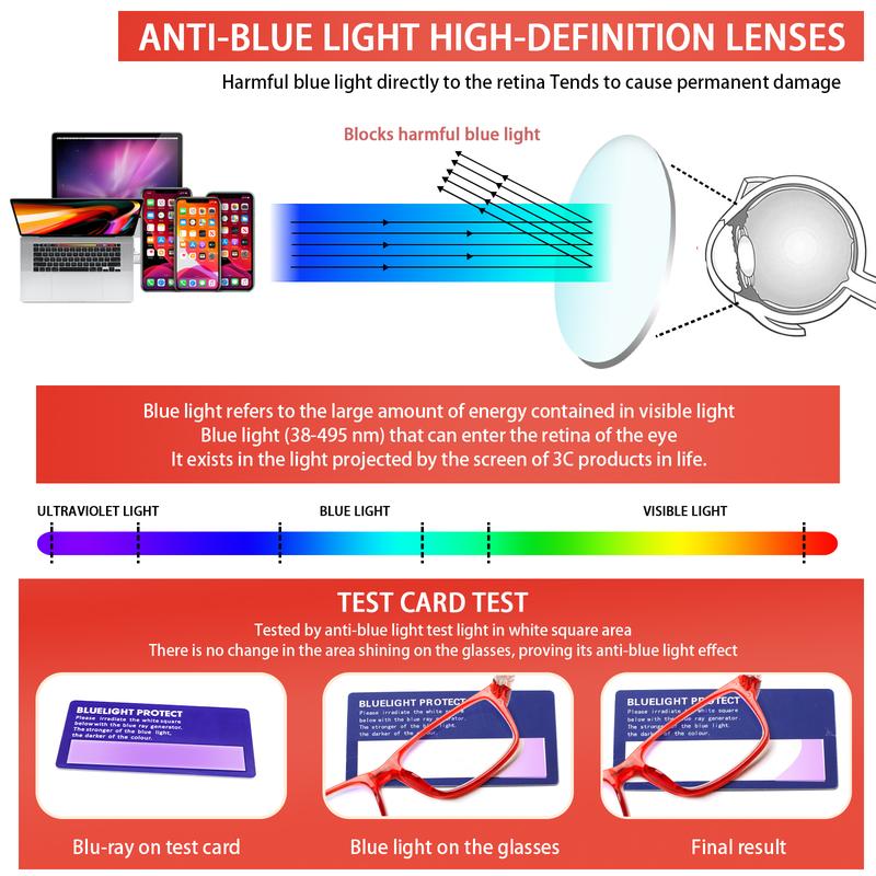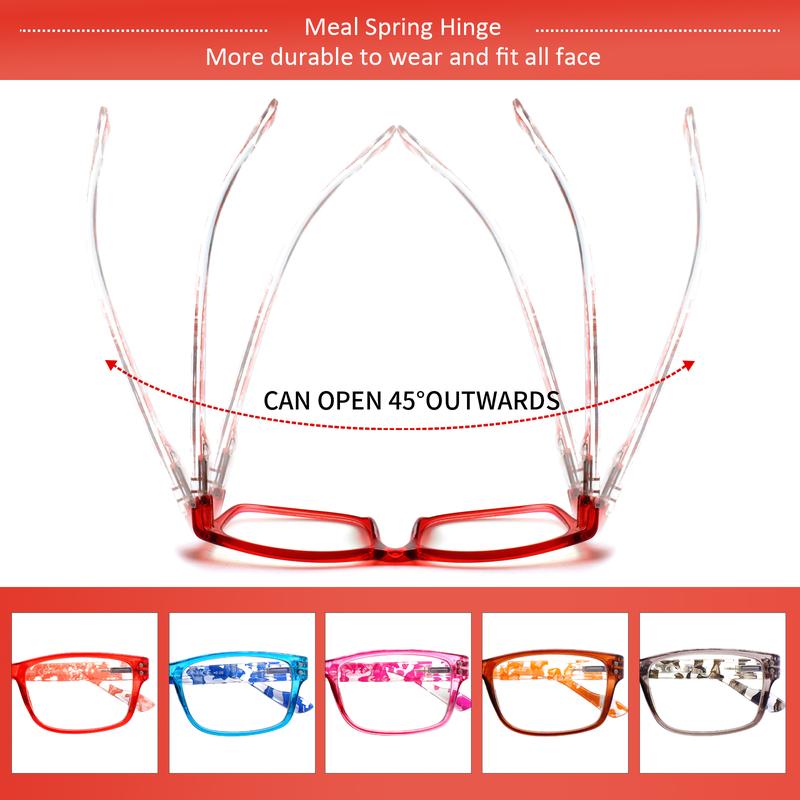 4.RELIABLE QUALITY BRIGHT COLORS : Made with a one-piece nose pad and high-quality material, these blue-blocking reader glasses are durable, comfortable, and easy to match with different styles of clothes.