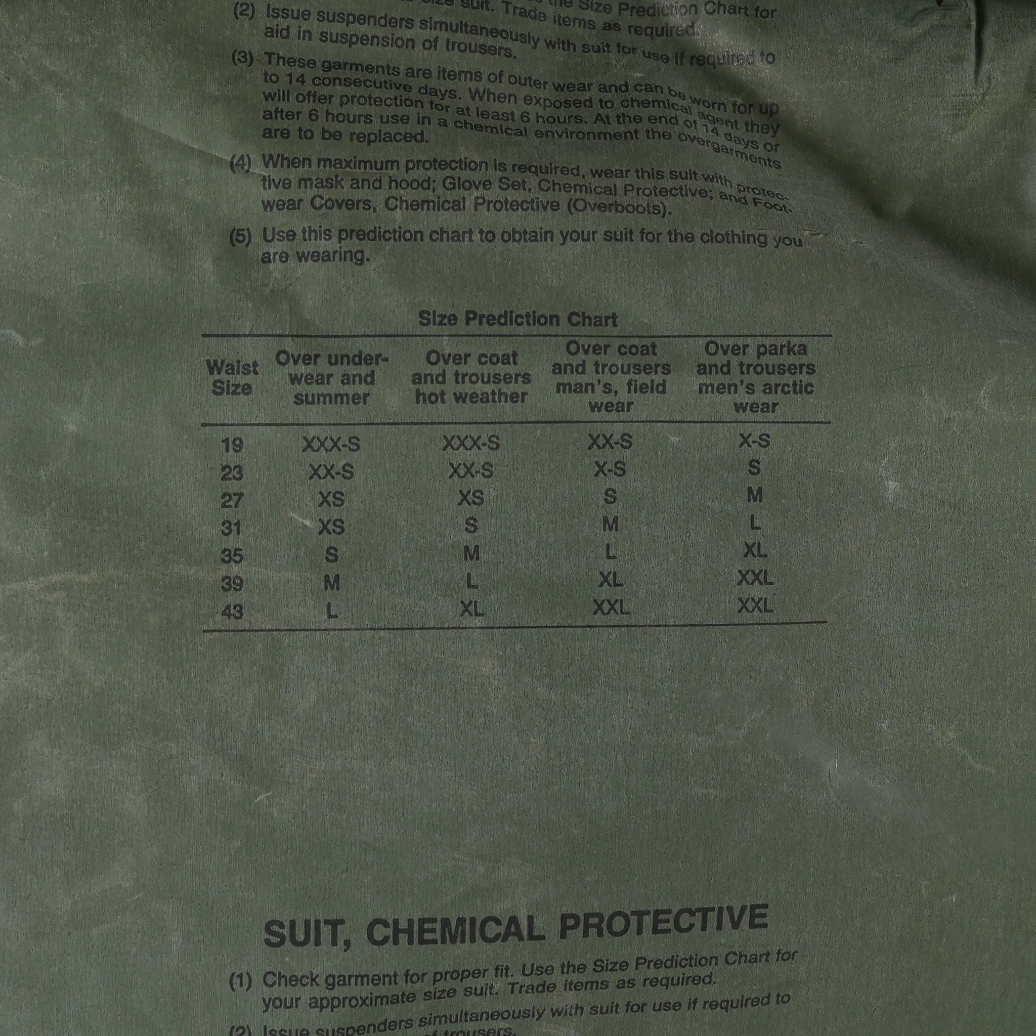 Unfortunately for these USGI "Suit, Chemical Protective" sets, mass deployment of Soviet chemical weapons never came to pass.