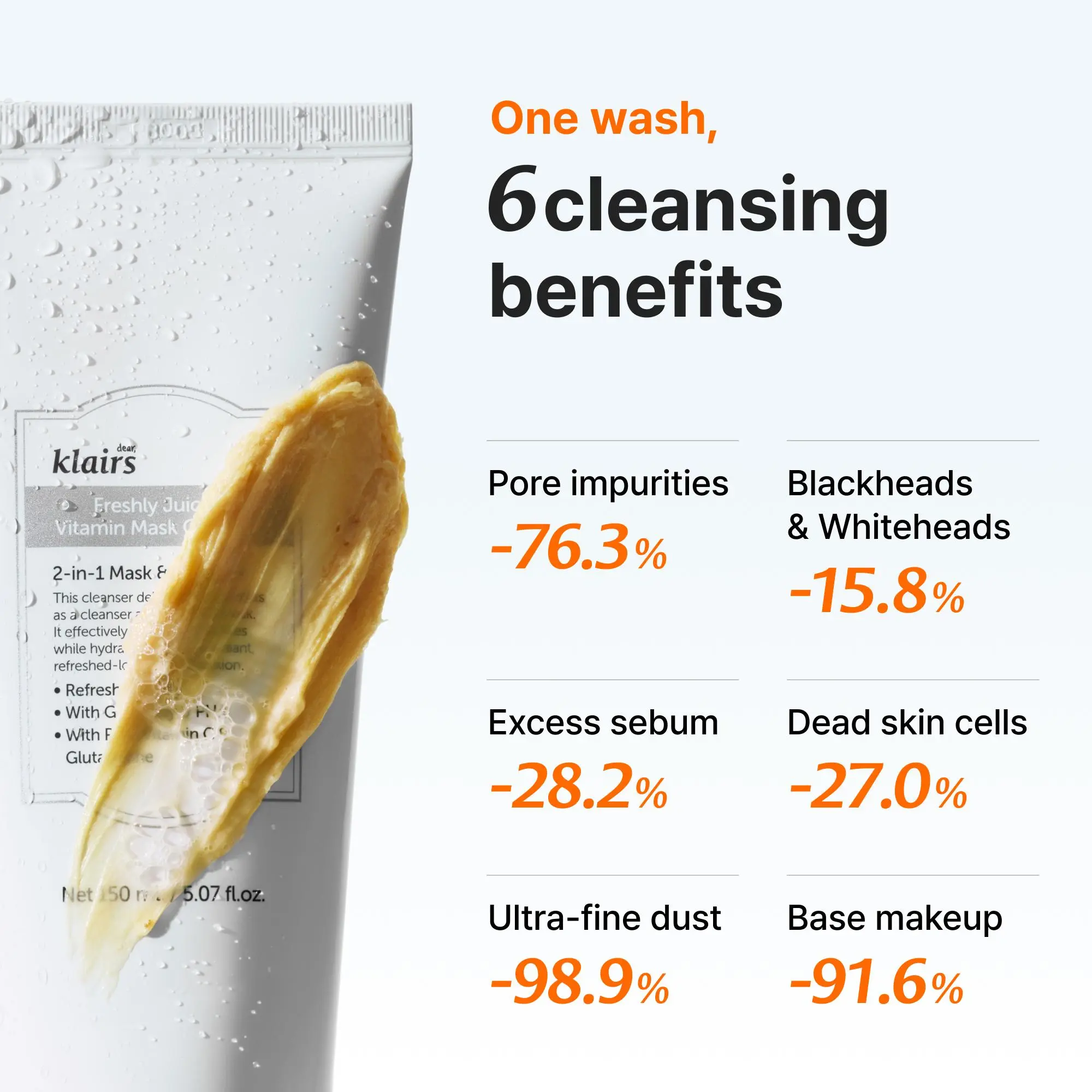 | Ingredients | Glycerin,Water (Aqua),Myristic Acid,Potassium Hydroxide,Palmitic Acid,Stearic Acid,Glyceryl Stearate SE,Sorbitan Olivate,Lauric Acid,Sodium Methyl Cocoyl Taurate,Hydroxypropyl Starch Phosphate,Potassium Cocoyl Glycinate,Lauryl Hydroxysultaine,Glycol Distearate,Citrus Unshiu Peel Powder,Dipropylene Glycol,Kaolin,Polyquaternium-7,Hydroxyacetophenone,Citrus Aurantium Dulcis (Orange) Peel Oil,Caprylyl Glycol,Sodium Chloride,Gluconolactone,Sodium Phytate,Melia Azadirachta Flower Extract,Ocimum Sanctum Leaf Extract,Melia Azadirachta Leaf Extract,Curcuma Longa (Turmeric) Root Extract,Corallina Officinalis Extract,Panthenol,Sodium Benzoate,Dipotassium Glycyrrhizate,Niacinamide,Ascorbic Acid,Glutathione,Butylene Glycol,Caprylic/Capric Triglyceride,1,2-Hexanediol,Hydrogenated Lecithin,Sodium Hyaluronate,Beta-Glucan,Hyaluronic Acid,Hydrolyzed Hyaluronic Acid,Hydroxypropyltrimonium Hyaluronate,Hydrolyzed Sodium Hyaluronate,Potassium Hyaluronate,Pentylene Glycol,Sodium Hyaluronate Crosspolymer,Sodium Acetylated Hyaluronate,Limonene |
