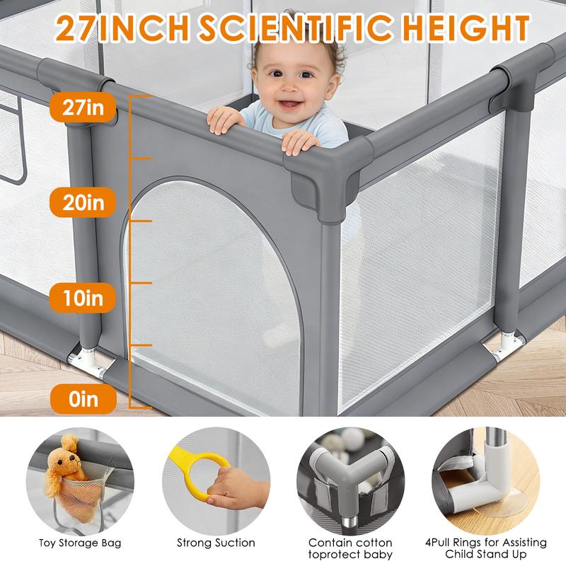 The dearlomum playpen measures 50" x 50"/71"x59", providing ample space for babies aged 0-12 months. This extra-large size ensures your little one has enough room to play and explore safely.