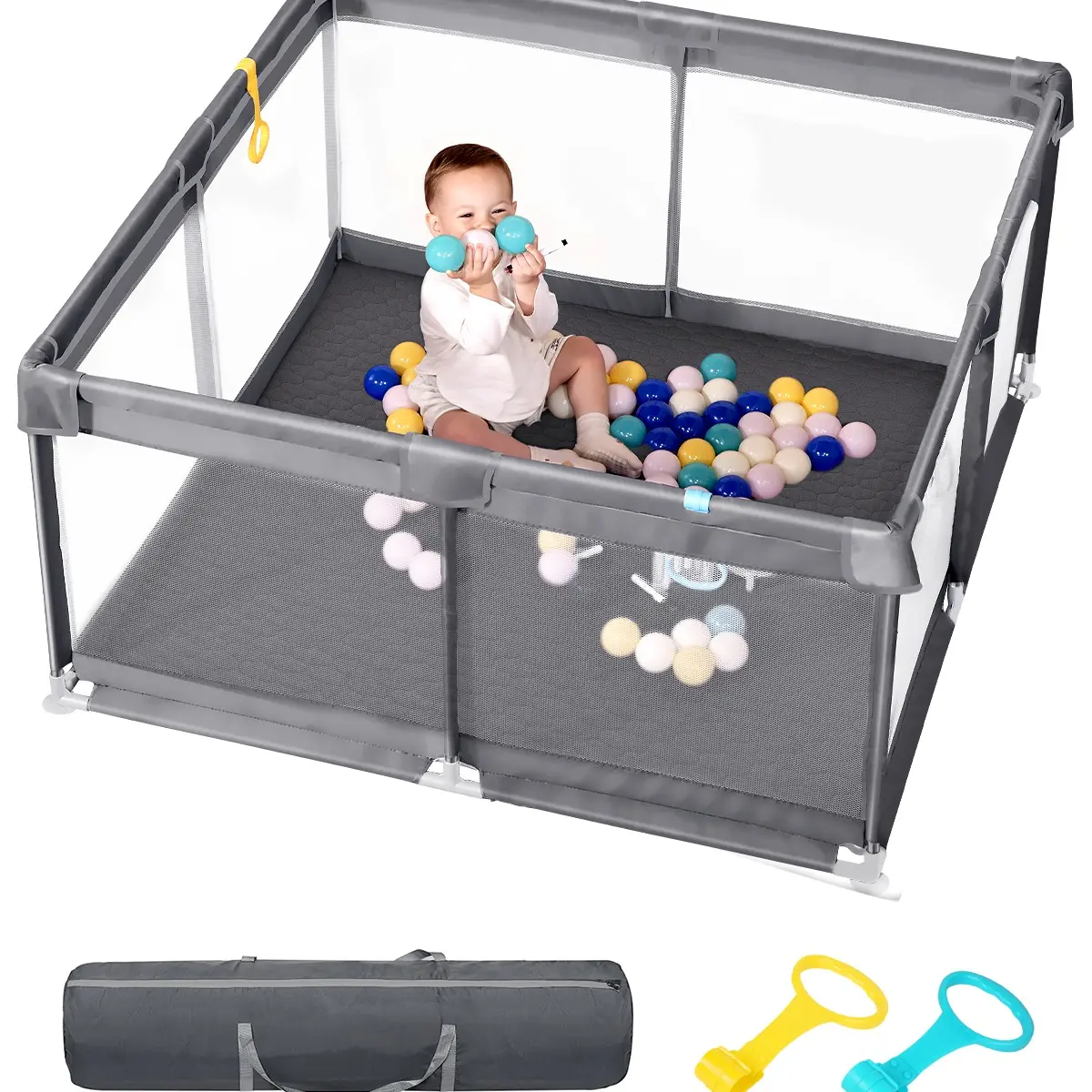 ·Soft Mesh Material: Provides a comfortable play area.