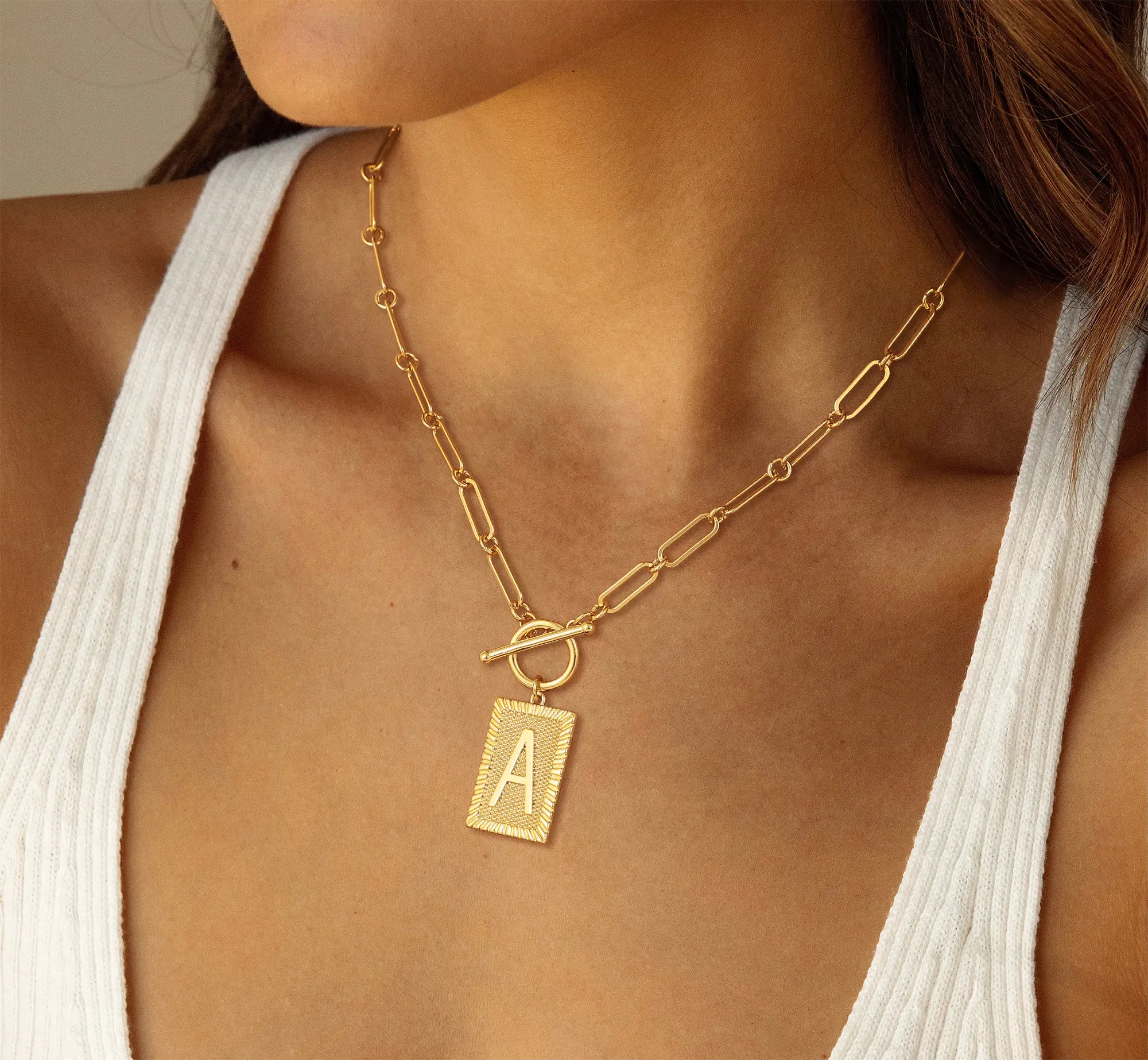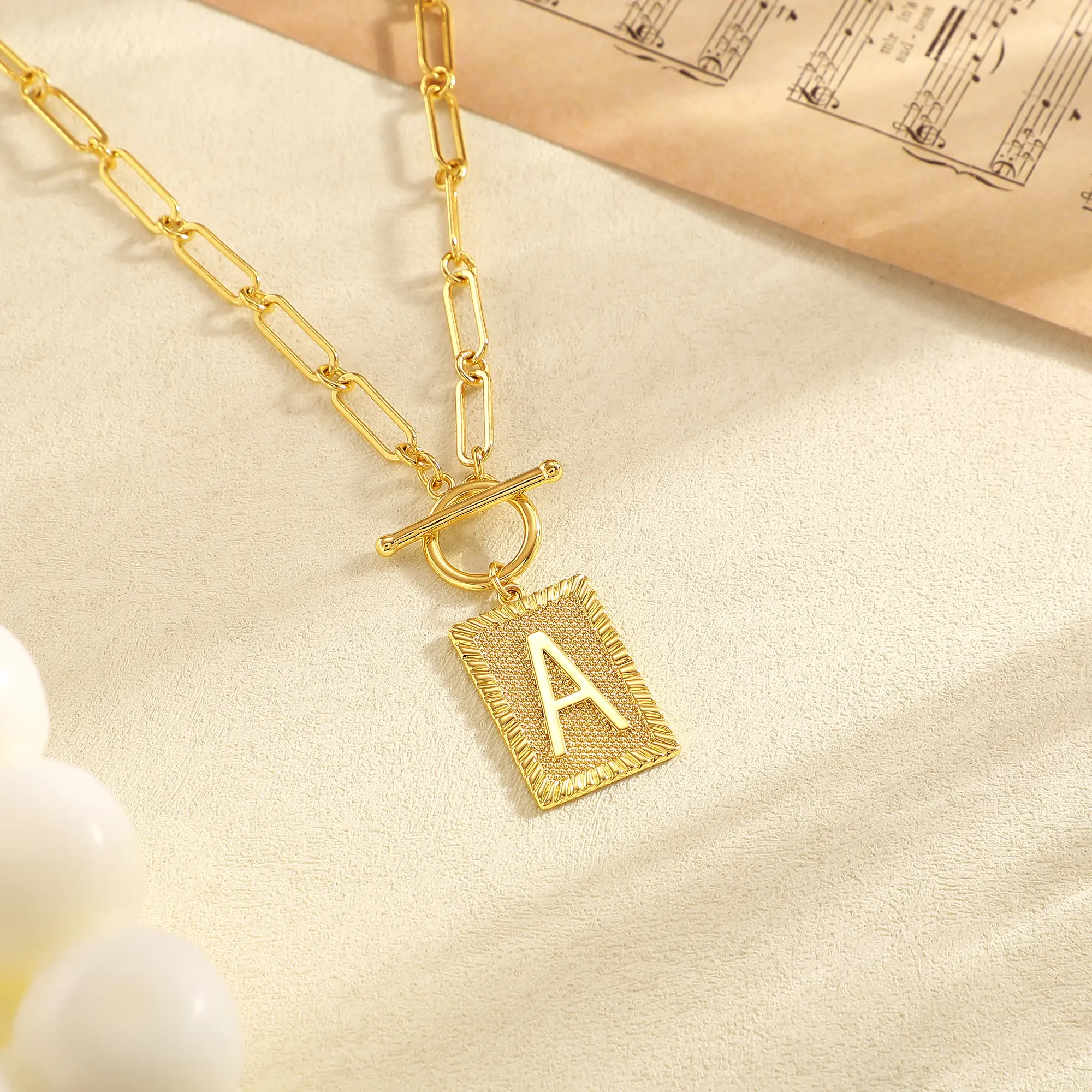 Dearmay Initial Necklaces for Women, Toggle Clasp Square Letter Pendant Necklace Trendy Dainty Paperclip Chain Necklaces for Women Jewelry Gifts