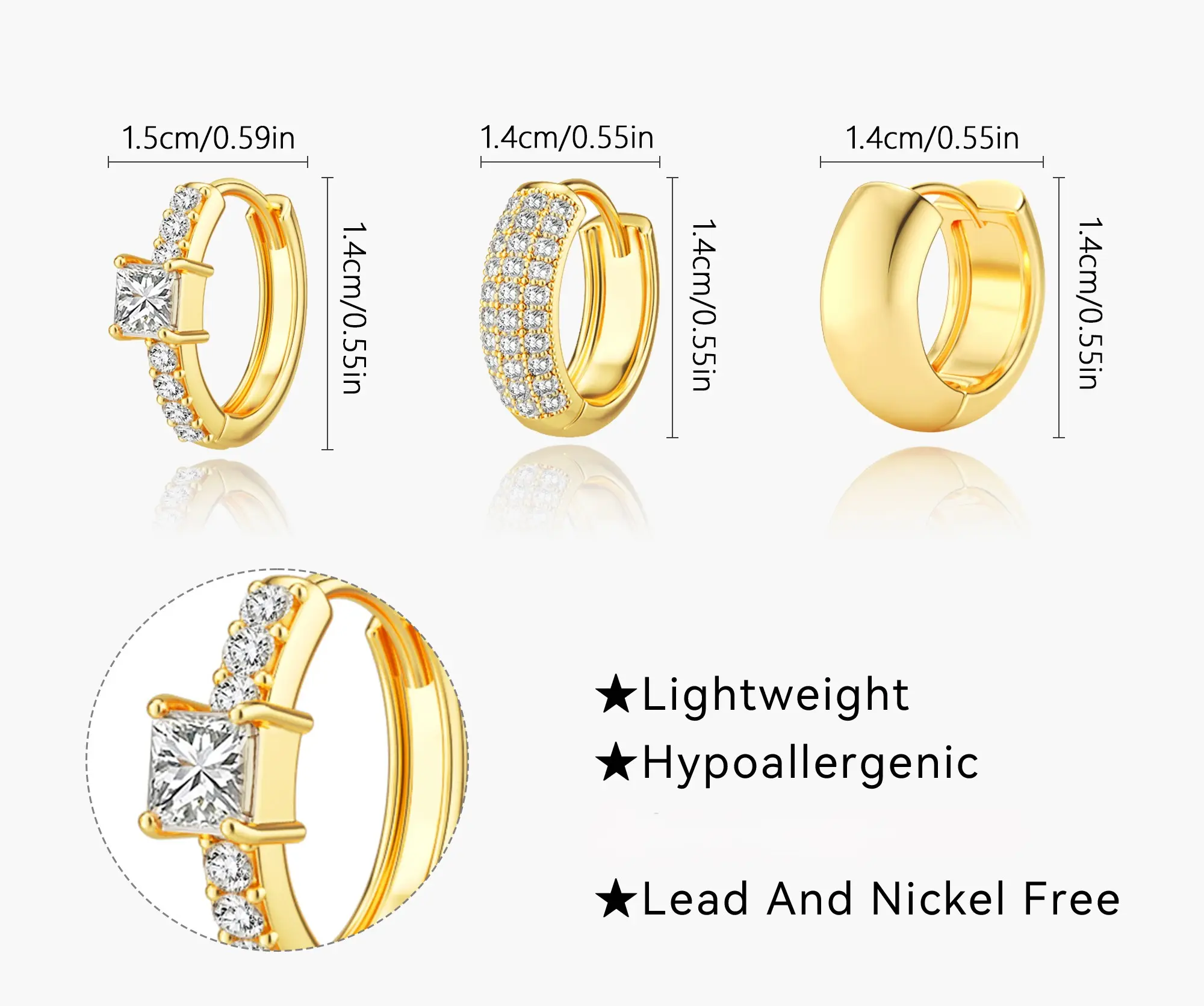 ·The combination of gold hoops and cubic zirconia adds a touch of sparkle, making them a versatile jewelry piece. 🌟