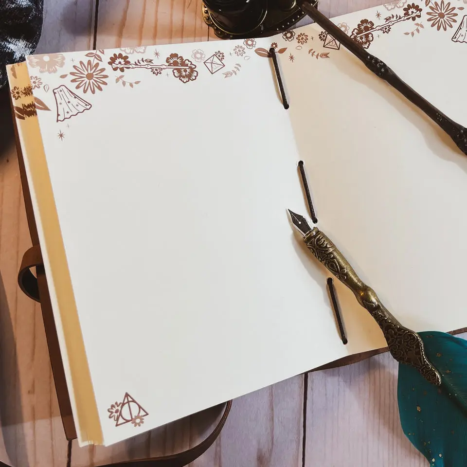Introducing our Harry Potter Deathly Hallows Vegan Leather Wrap Journal - the perfect blend of magic and functionality! Crafted with eco-friendly, high-quality vegan leather, this Harry Potter Deathly Hallows Journal is a must-have for every wizard or witch. The intricate Deathly Hallows symbol, elegantly embossed on the cover, adds a touch of wizarding charm to your everyday writing experience. Open the cover to reveal 240 unlined pages of high-quality, 120 gsm paper adorned with the Deathly Hallows magical artifacts. Whether you're jotting down spells, sketching magical creatures, or simply chronicling your daily adventures, this Harry Potter journal is your reliable companion in the world of enchantment. Elevate your writing rituals with this Harry Potter Deathly Hallows Vegan Leather Wrap Journal - where style meets the magic of the Wizarding World!