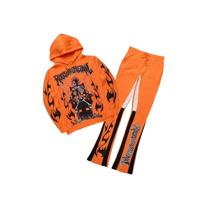 Deathrow Orange/Black Hoodie/Stacked Track Pant Set