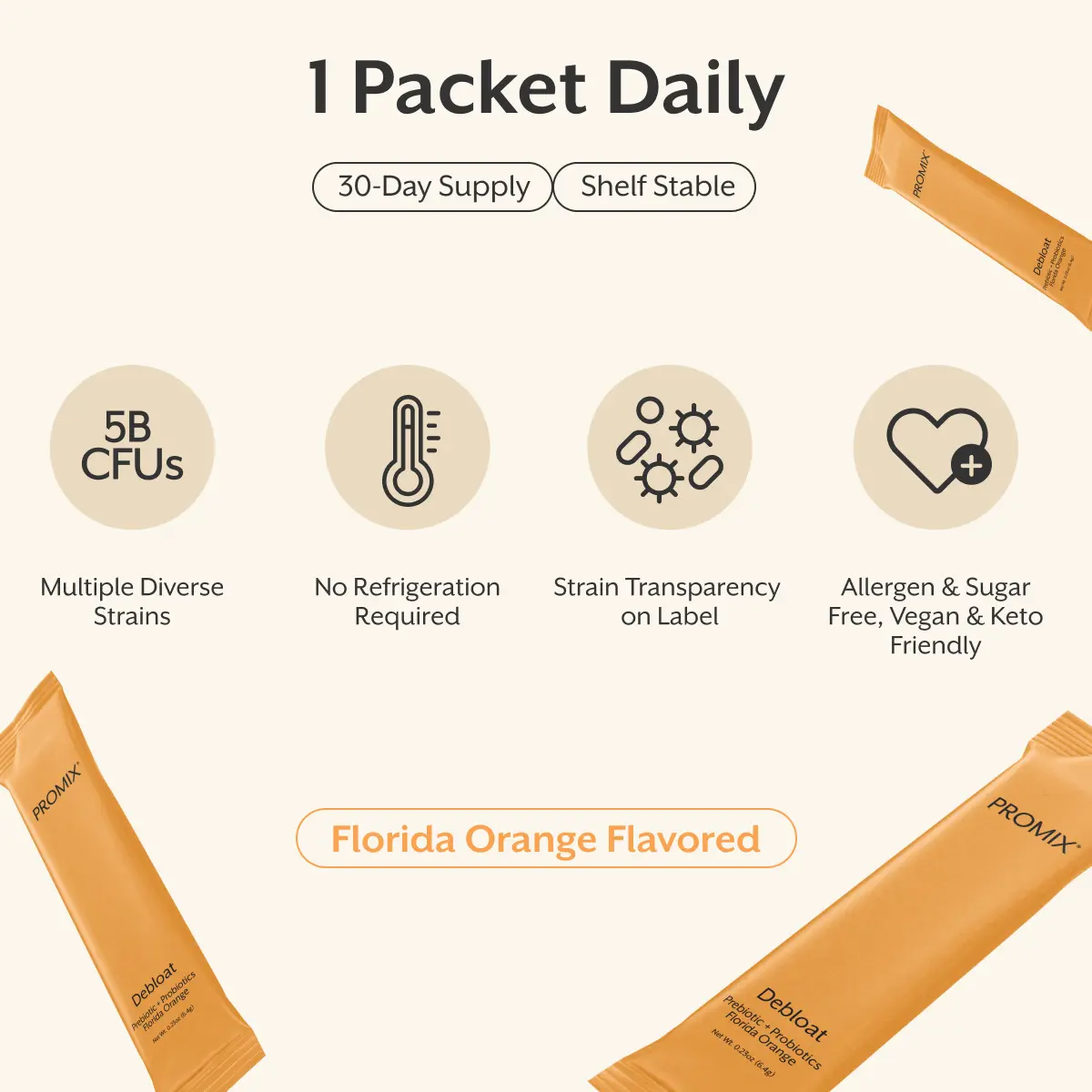 Promix Nutrition Debloat: Prebiotic + Probiotic Florida Orange All Natural Supplement Gut Cleanse Capsules