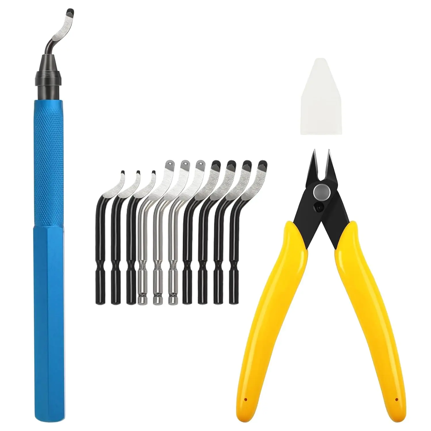 Deburring Tool for 3D Printer,18pcs,10pc Multiuse Blades Removing Burr,6Pcs Needle File,Micro Wire Cutter for 3d Print, Plastic Models
