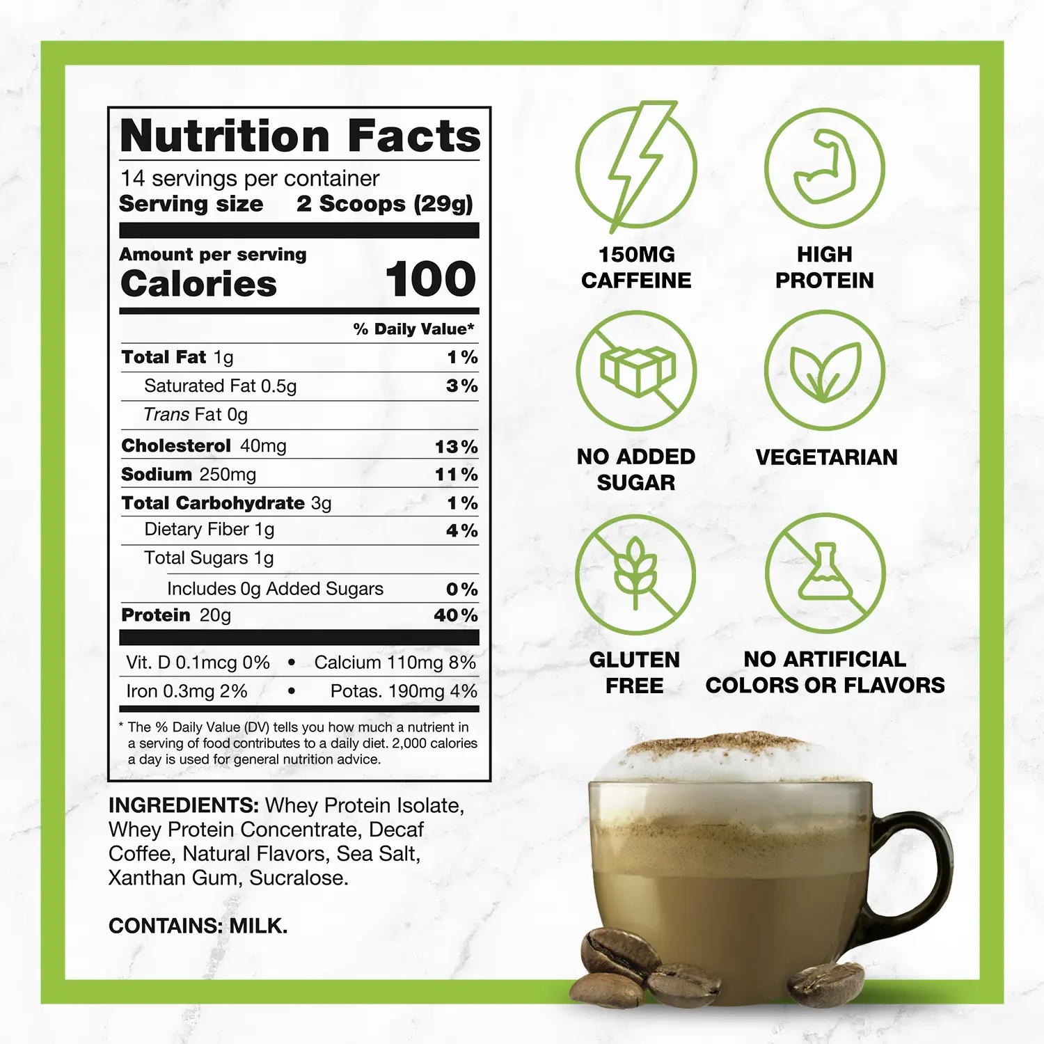 Perfect for when I want coffee with no caffeine and I still want to get in my protien in the afternoon 100% DELICIOUS