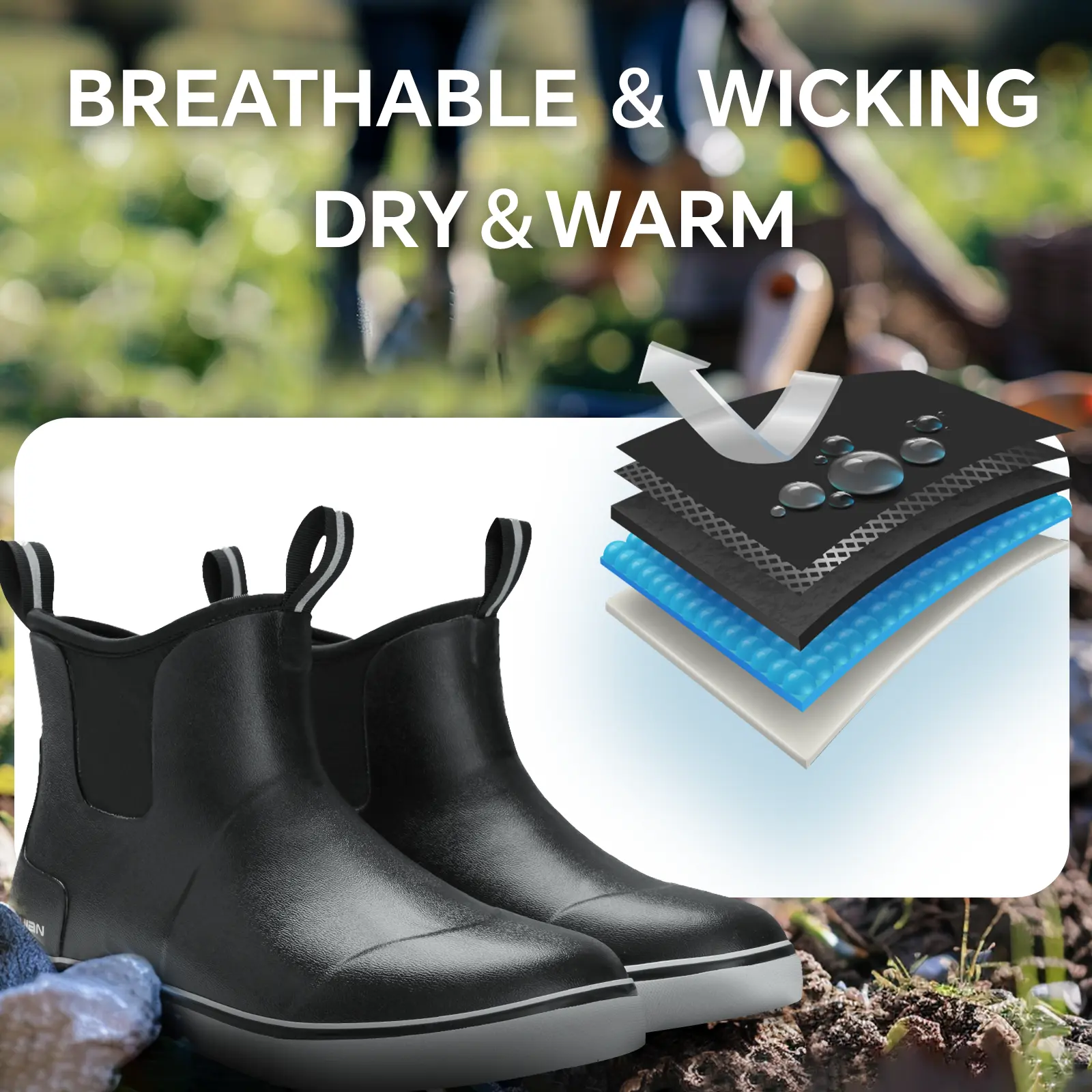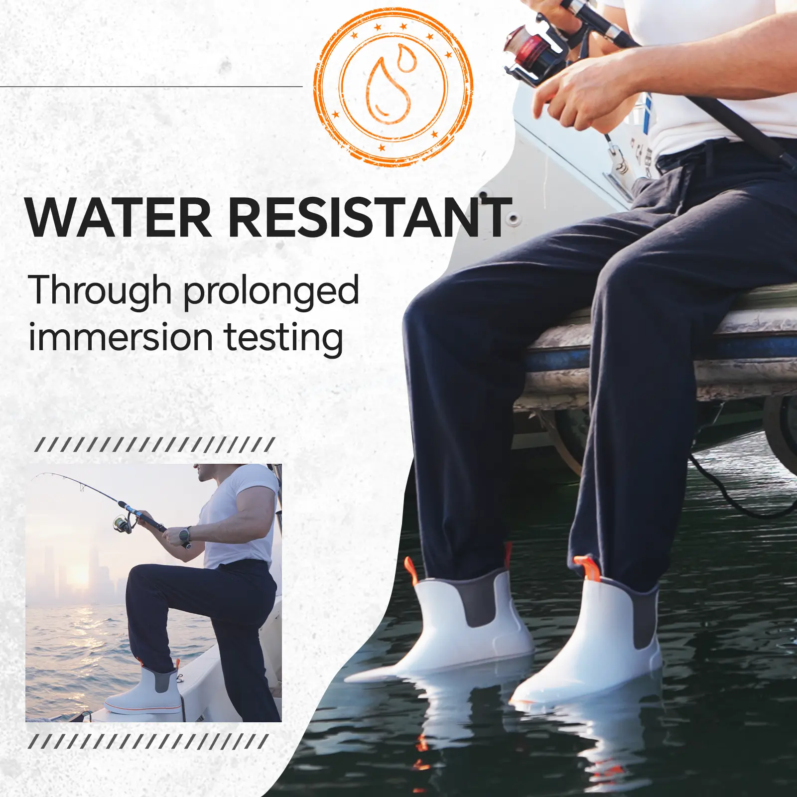 【Comfortable & Breathabile】:Dual-density extreme comfort insole help keep feet cool, soft, dry and comfortable. Wearing waterproof deck boots allow you to stand comfortably all day long. Multi layers of materials enhance the performance of deck boots, providing durability and comfort.
