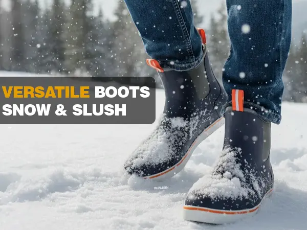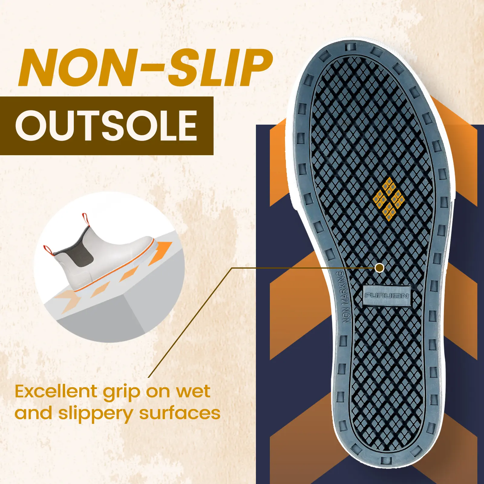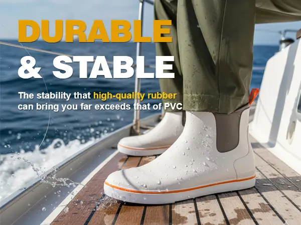 【Durable & Waterproof】: Furuian deck boots are made of 100% waterproof rubber and neoprene, which with a 1 inch flat heel will keep your feet dry no matter how nasty the weather gets. Rubber upper construction provides durability and all day comfort.