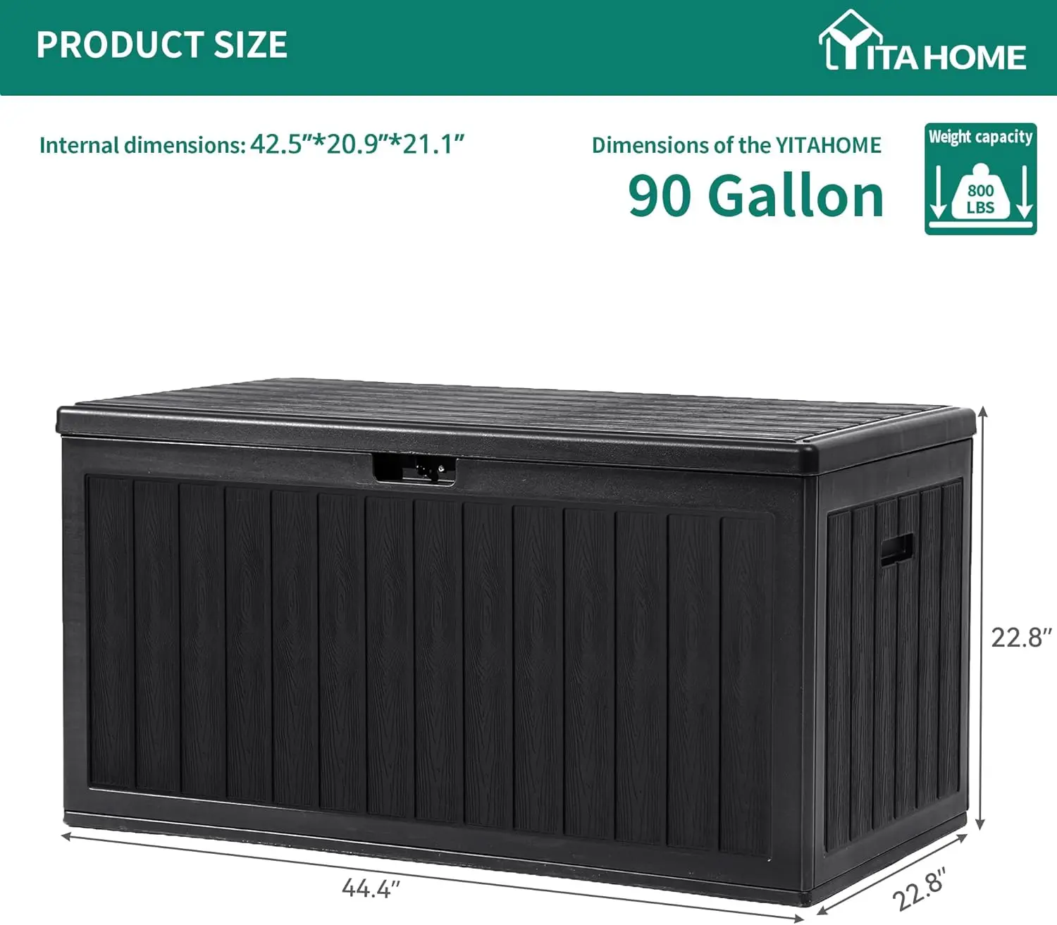 Double-layer Structure: This deck box features a double-layer design that maximizes durability and strength, while the wood grain texture complements any decor; Made from weather-resistant resin that’s rust-resistant, corrosion-resistant, and maintenance-free