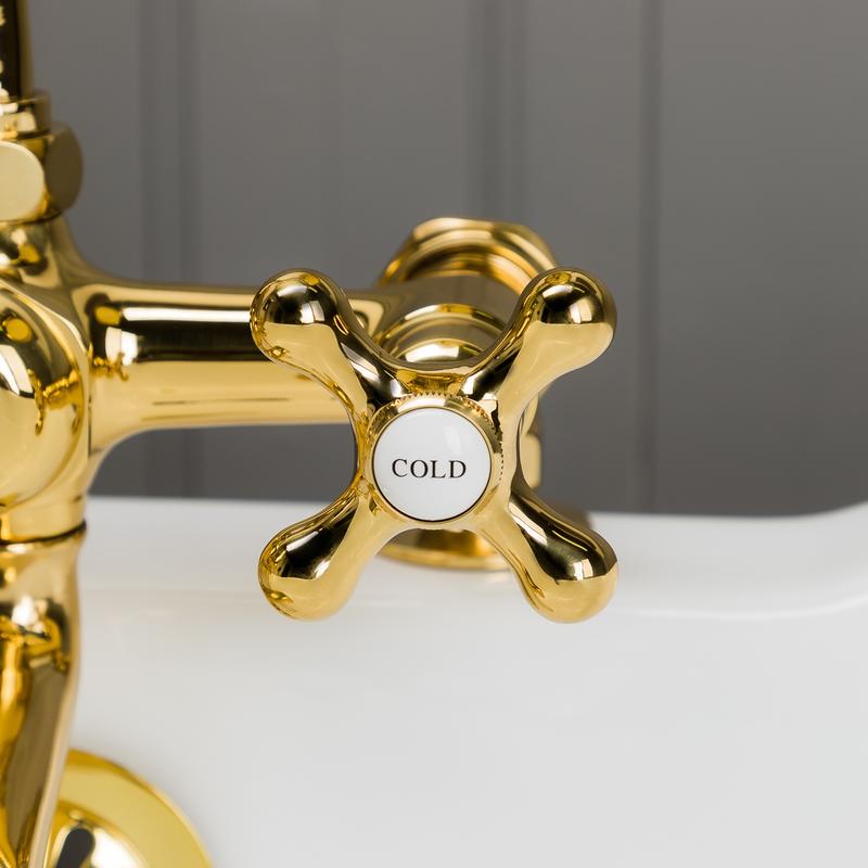 5. Deck Mount Tub Faucet Set Polished Brass