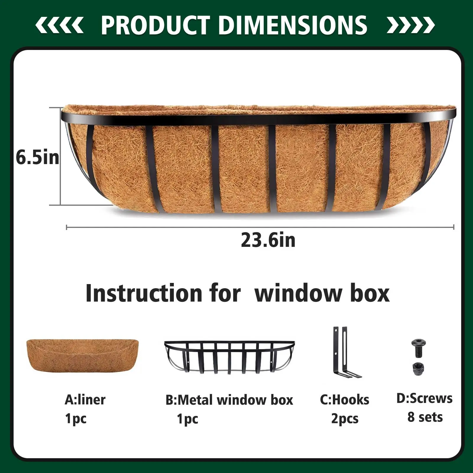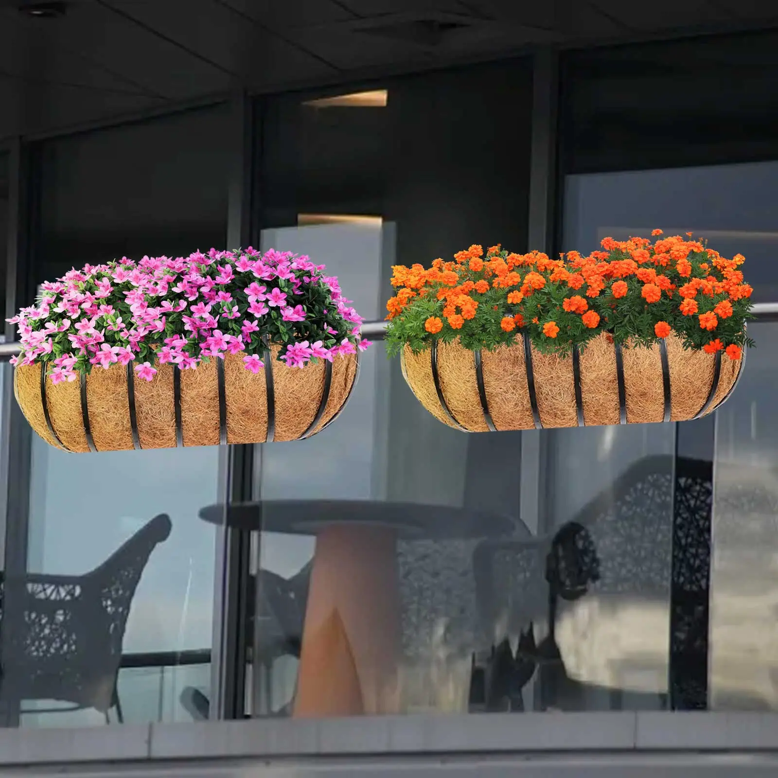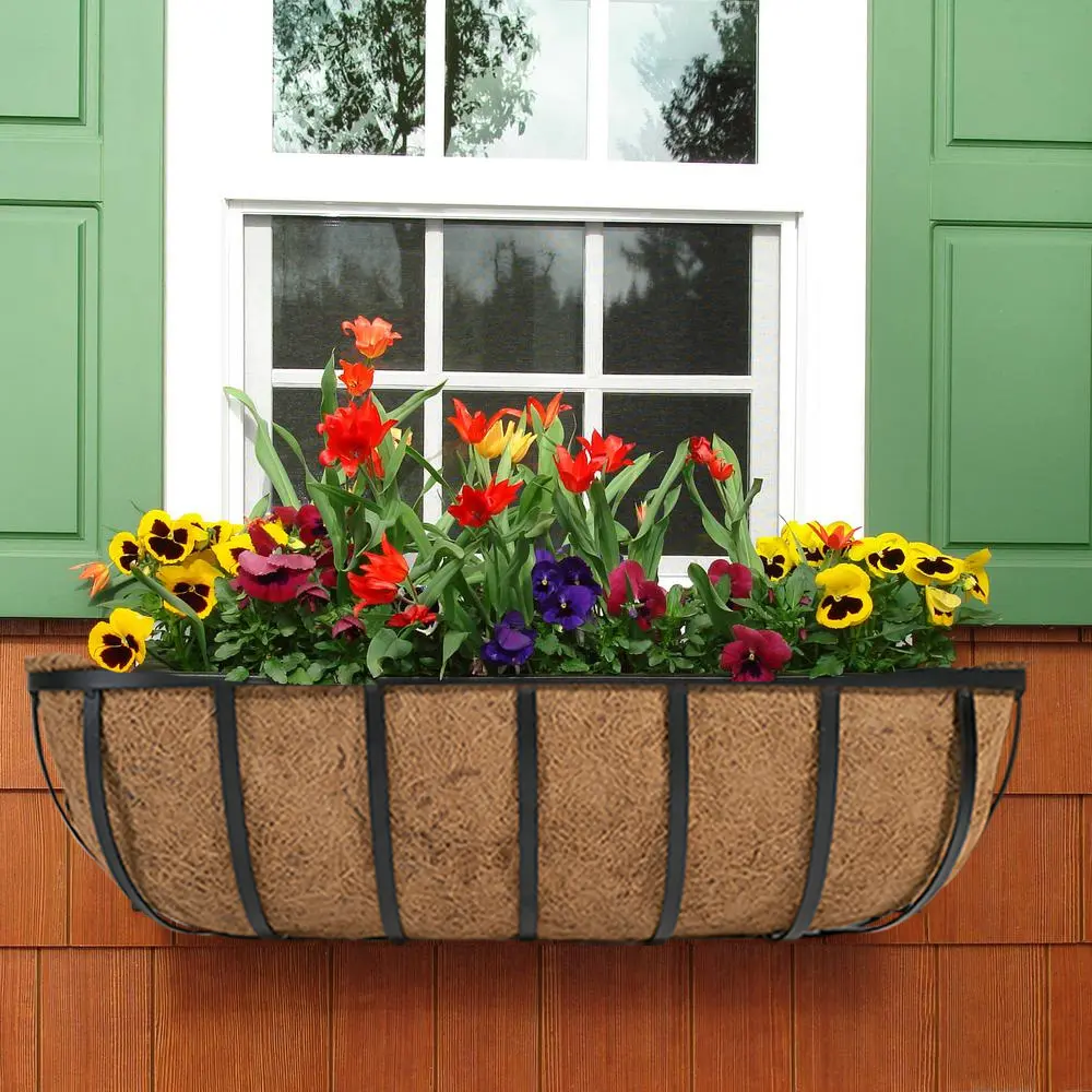 ·GREAT PLANTING MEDIA (material from natural coconut): This flat back wall mounted window flower box basket is filled with coco coir liners, which is excellent planting material for plants as it holds a good deal of water, provides superior drainage and good air ventilation for the roots all at the same time