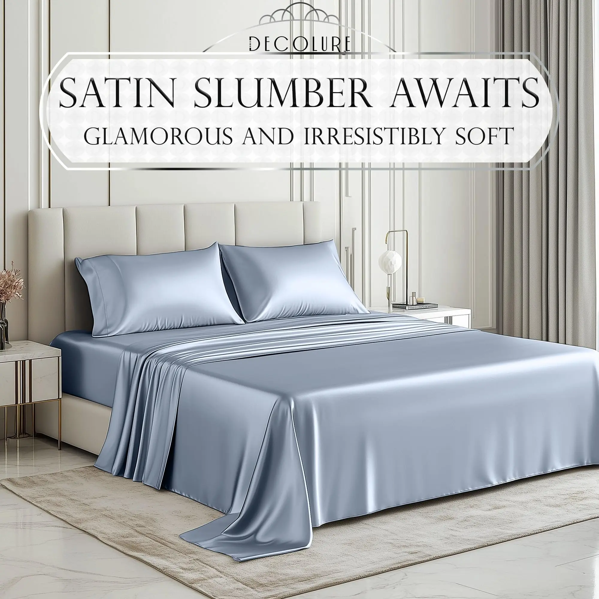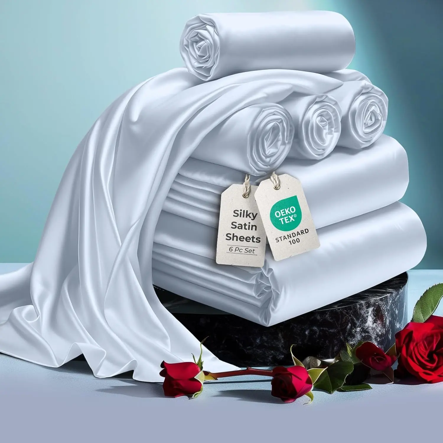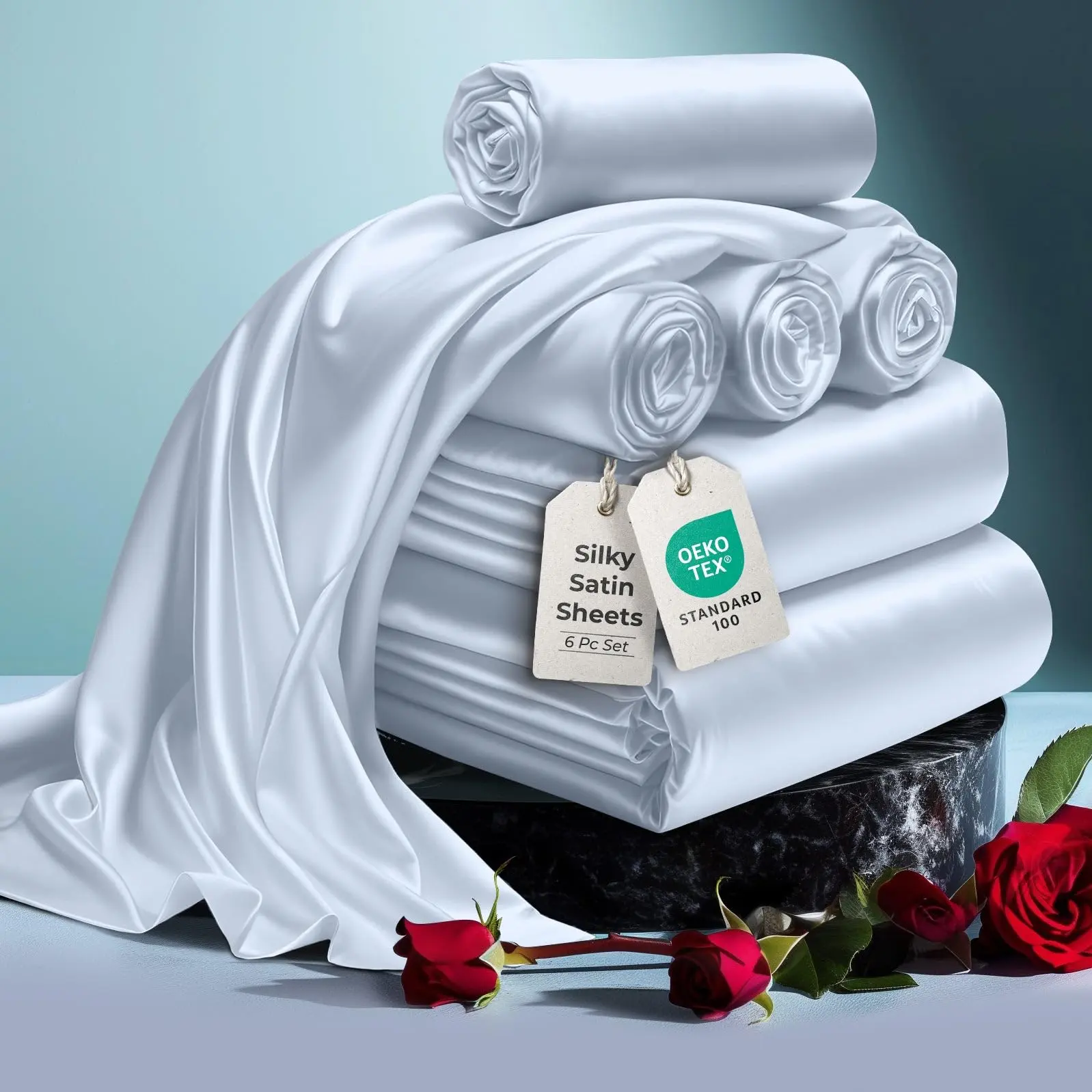 DECOLURE Satin Bed Sheets - 6 Piece Luxury Set