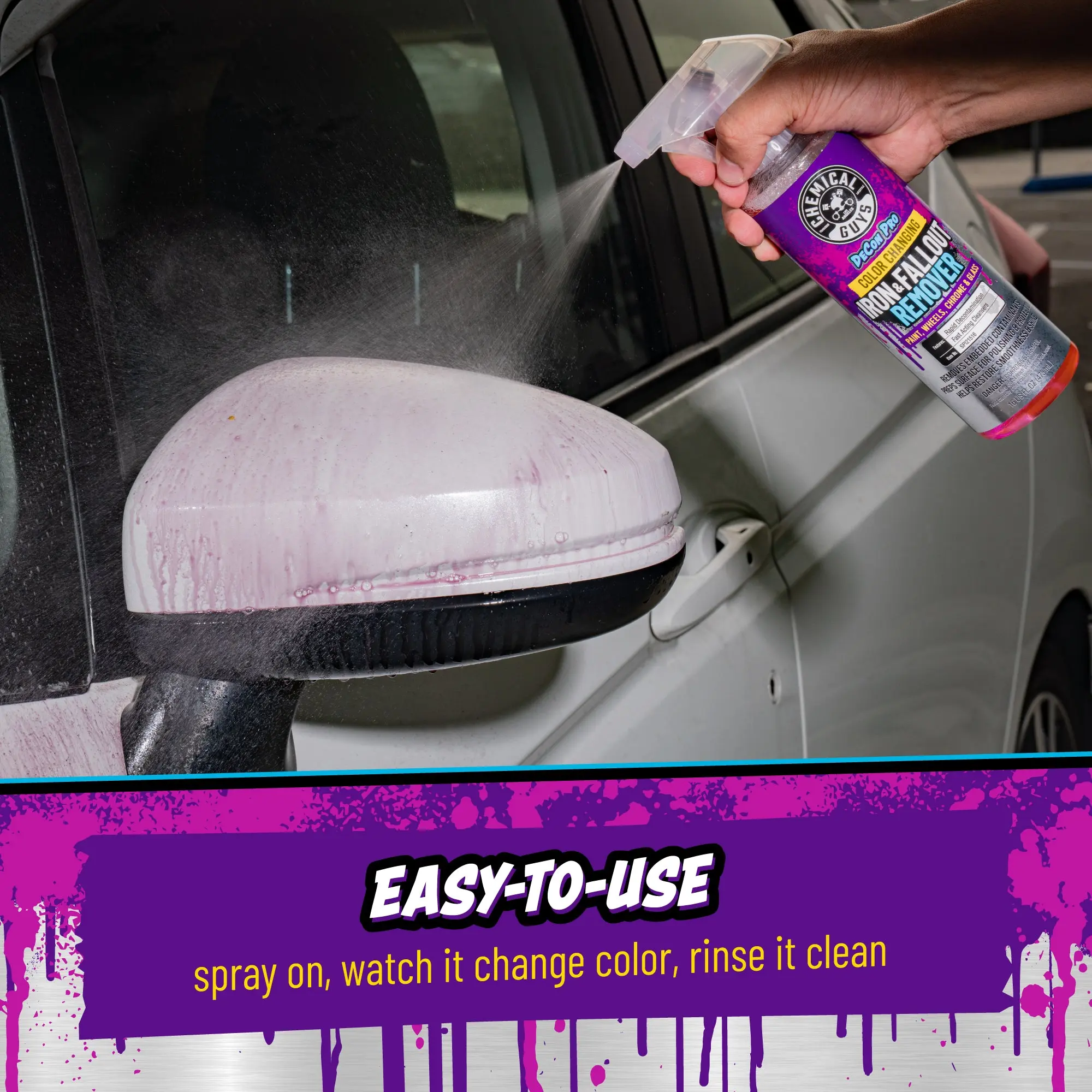 Great product. Shake spray turns color wash off. Love chemical guys for the simple way the products can be used. Use the UPC Code for instructions on your product it will never disappoint.